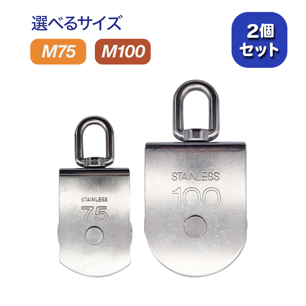 滑車 ローププーリー ステンレス M75 M100 2個セット 屋内 屋外 耐食性 防錆性 耐久性 耐久性 耐摩耗性 アウトドア キャンプ 登山 送料無料
