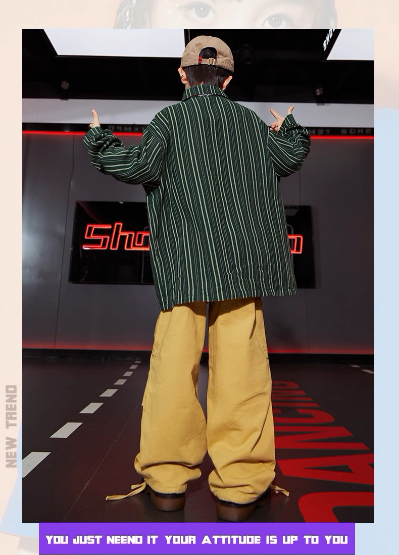 キッズダンス,ヒップホップ,HIPHOP,HIP HOP,K-POP,韓国,ガールズヒップホップ,ダンスコンテスト,ダンス発表会,子供衣装,子供ダンス衣装,子供ダンス服,ダンスウェア,ファッション,長袖,かっこいい,カッコいい,おしゃれ,男の子,女の子,ジュニア,レディース,大人,派手,目立つ,110,120,130,140,150,160,170,180,ストライプ,デニム,ジーンズ,茶色,ブラウン