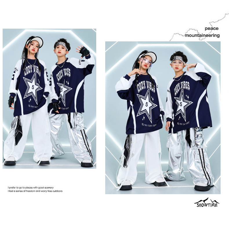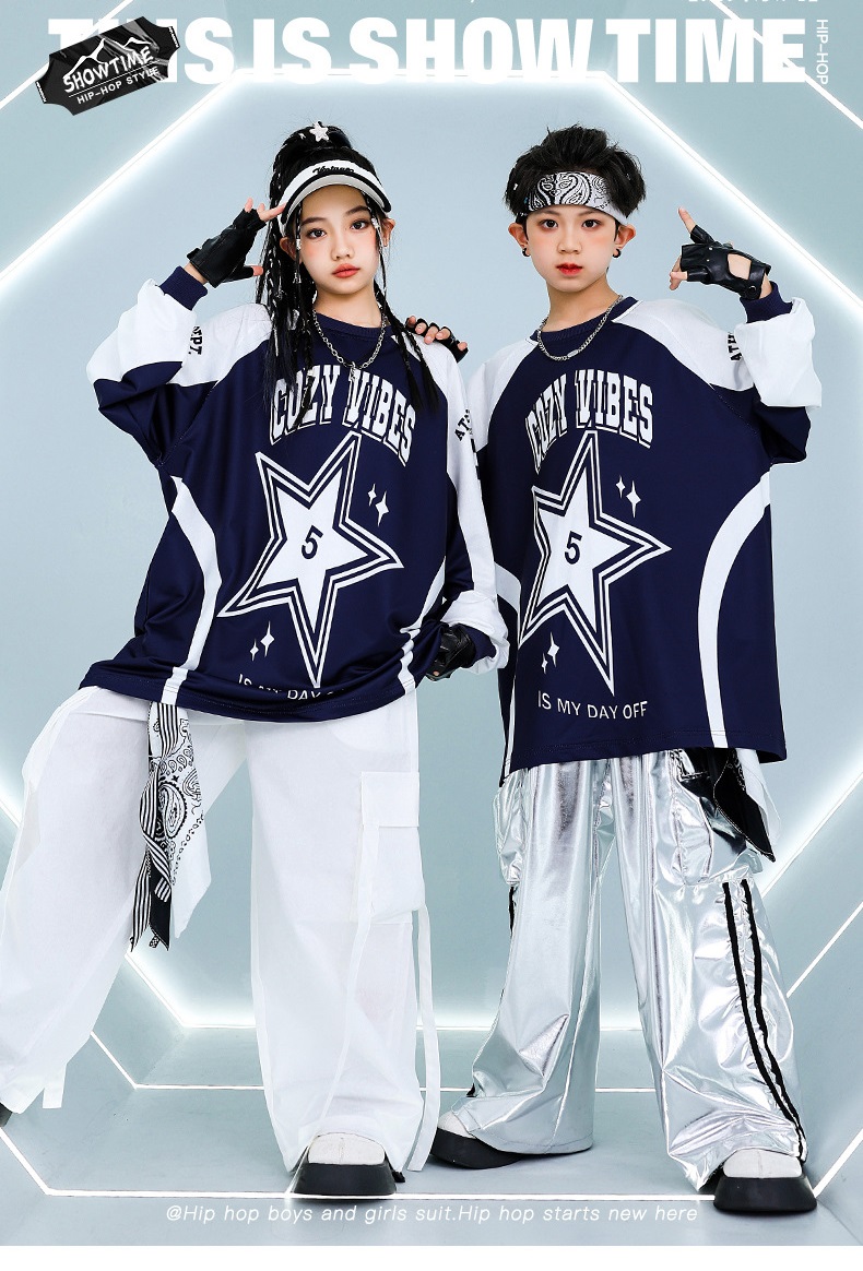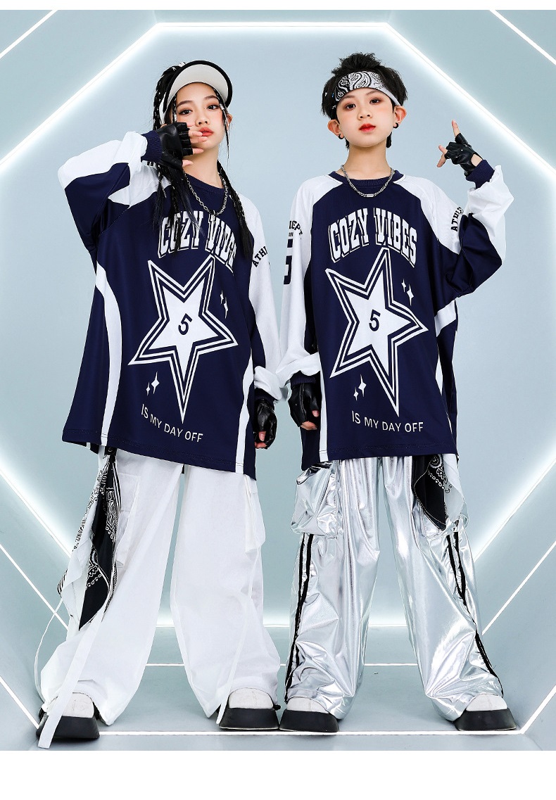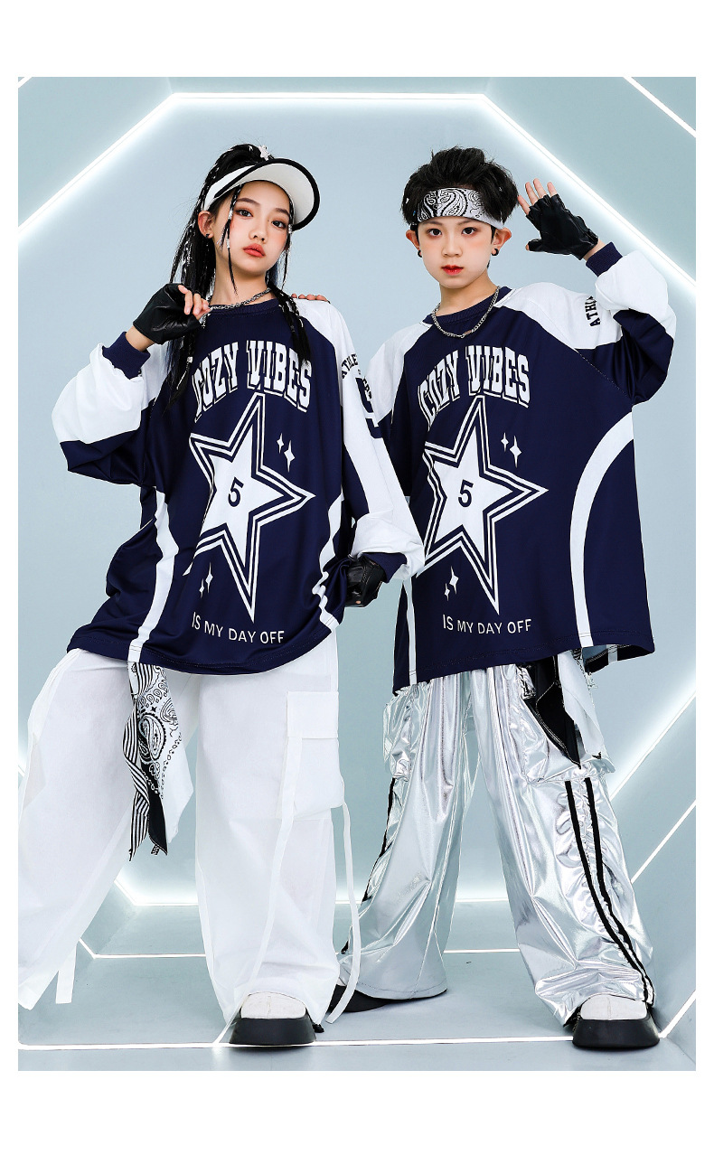 ヒップホップ,キッズダンス,HIPHOP,HIP HOP,韓国,ガールズ,ダンスコンテスト,ダンス発表会,子供衣装,子供ダンス衣装,子供ダンス服,ダンスウェア,ストリート系,ダボダボ,ダボパン,上着,ダンス練習着,ダンスレッスン着,ダンスファッション,長袖,ダボダボ,カッコいい,目立つ,男の子,女の子,ジュニア,レディース,大人,110,120,130,140,150,160,170,180,紺色,白,銀,ネイビー,ホワイト,シルバー,メタル