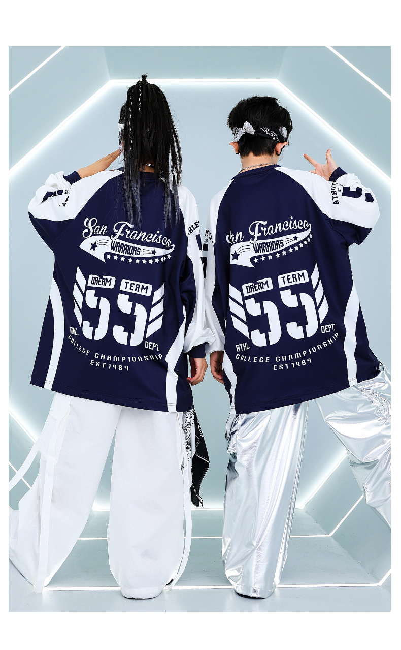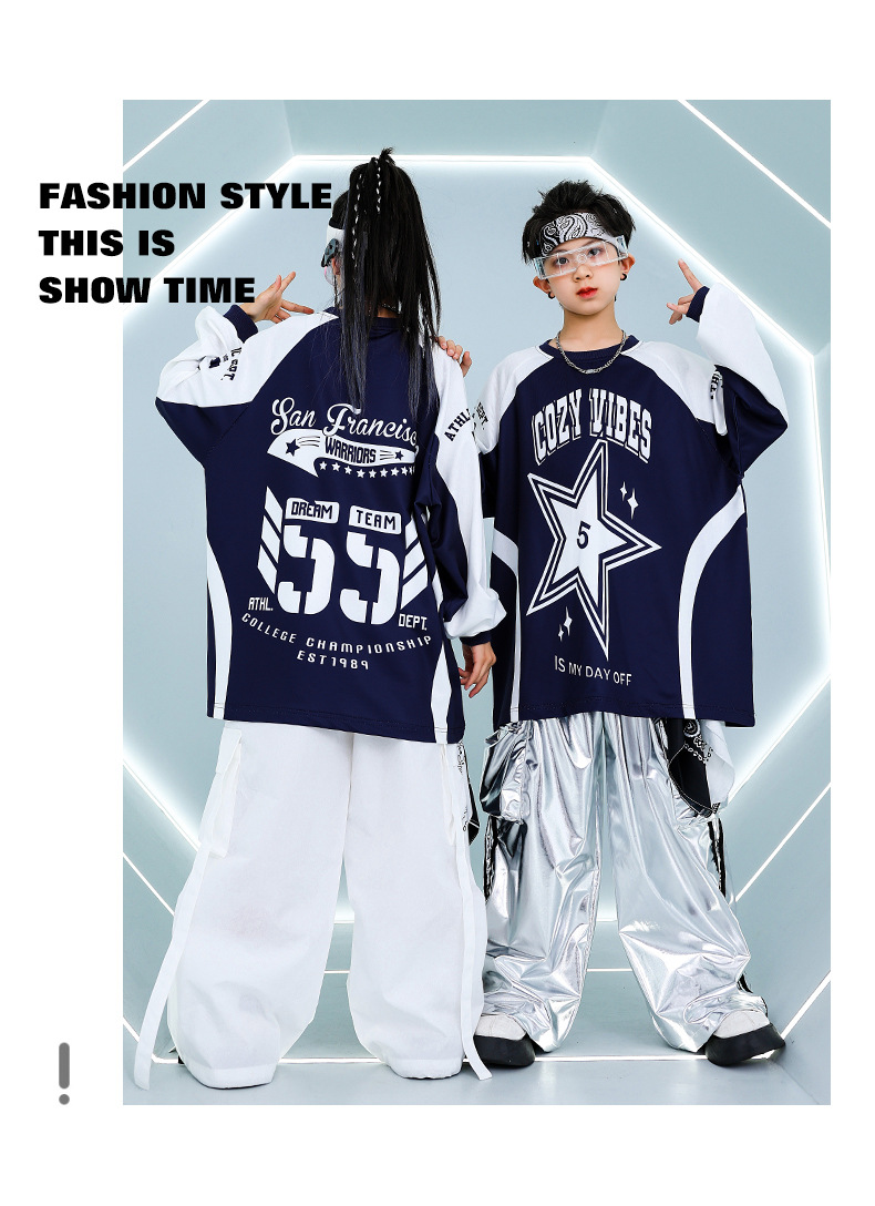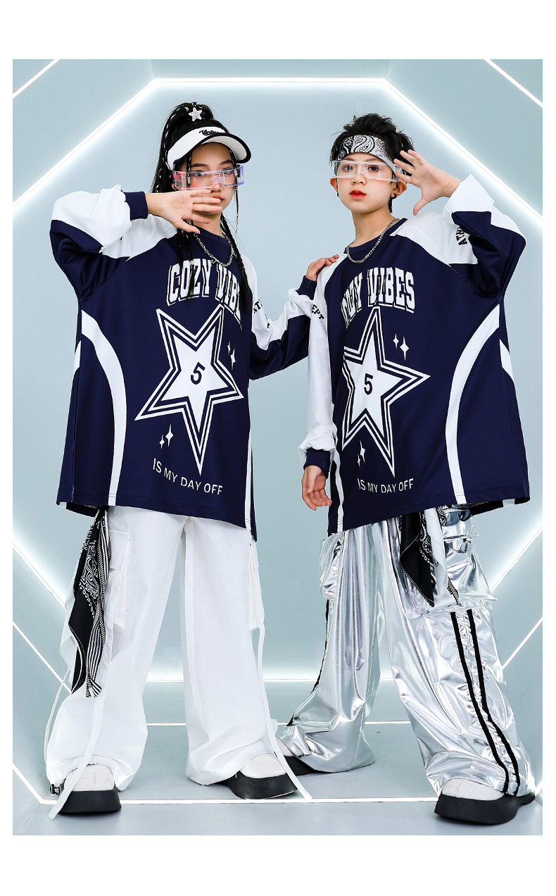 ヒップホップ,キッズダンス,HIPHOP,HIP HOP,韓国,ガールズ,ダンスコンテスト,ダンス発表会,子供衣装,子供ダンス衣装,子供ダンス服,ダンスウェア,ストリート系,ダボダボ,ダボパン,上着,ダンス練習着,ダンスレッスン着,ダンスファッション,長袖,ダボダボ,カッコいい,目立つ,男の子,女の子,ジュニア,レディース,大人,110,120,130,140,150,160,170,180,紺色,白,銀,ネイビー,ホワイト,シルバー,メタル
