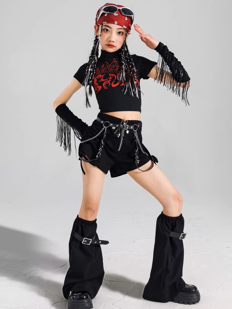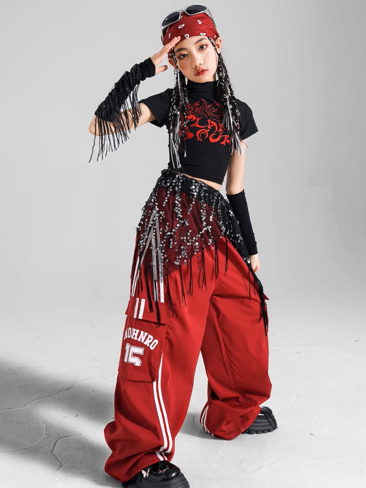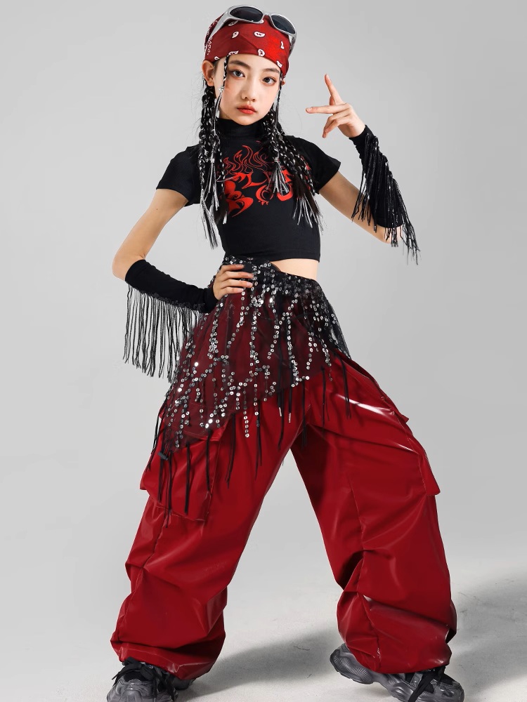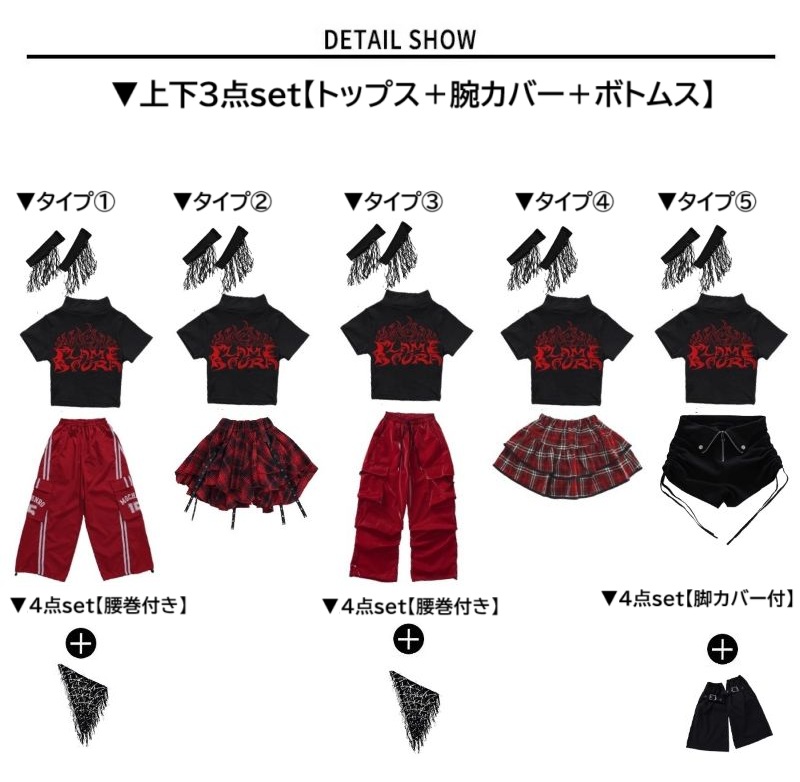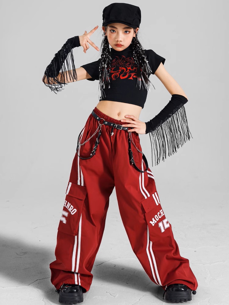 ・ブラック×レッドの派手かわいいキッズのダンス衣装!!