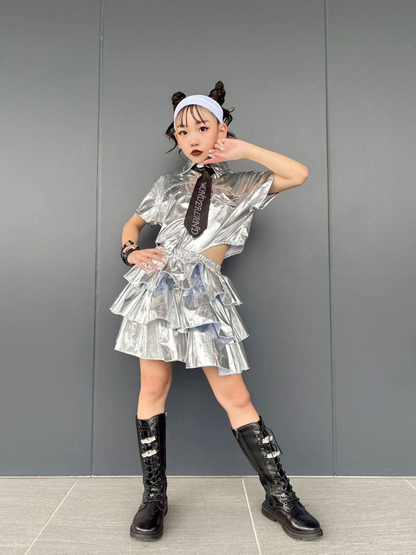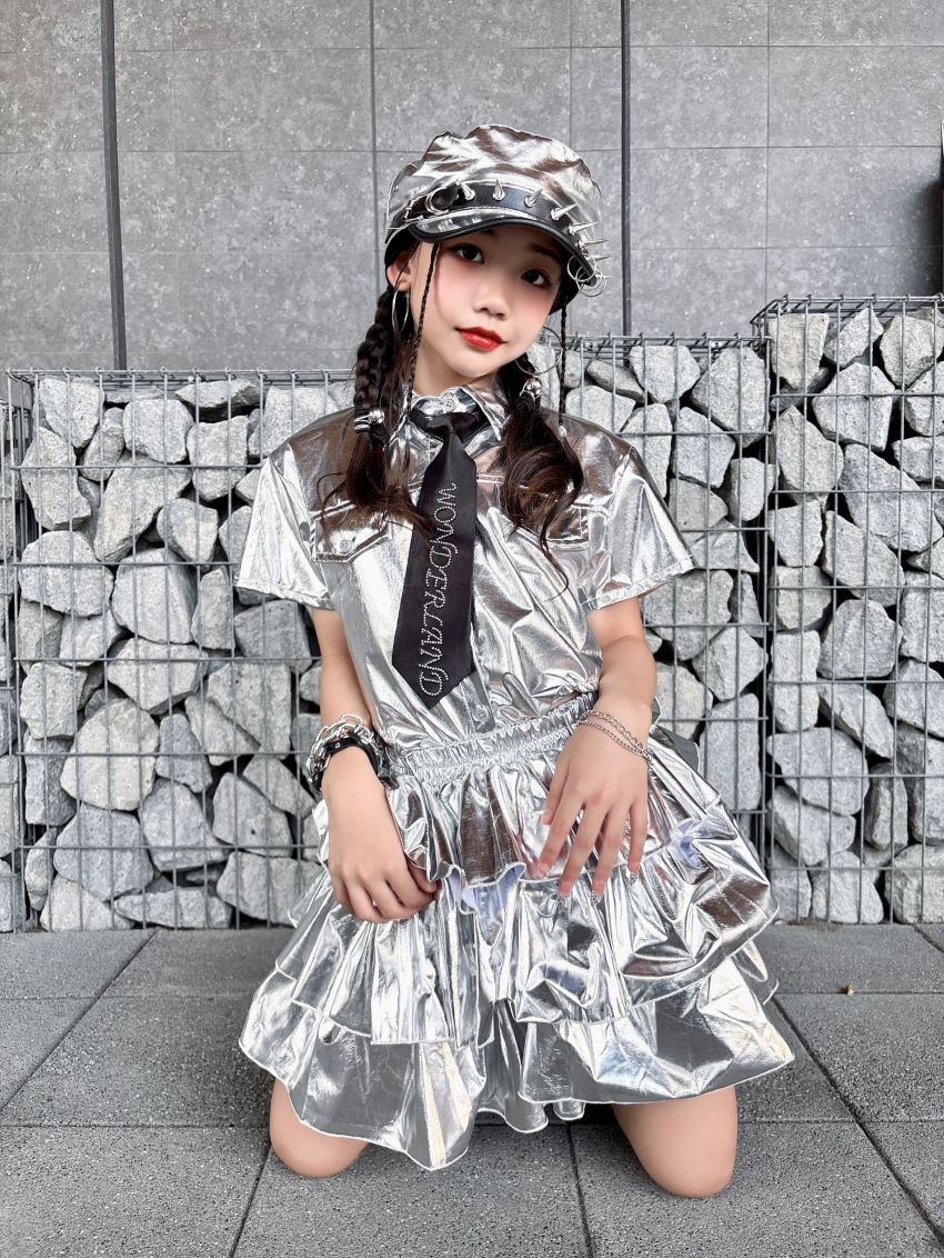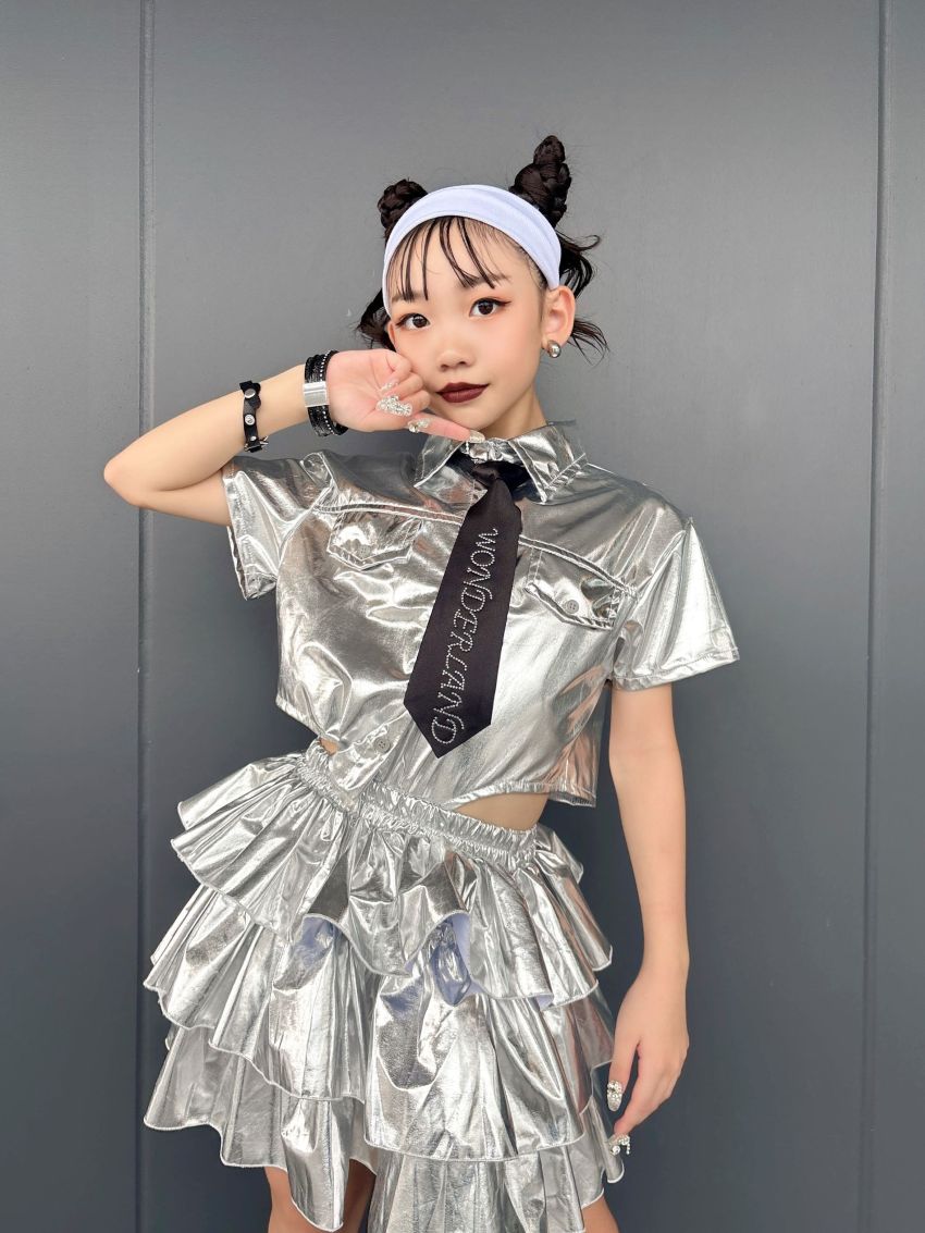 キッズダンス,ヒップホップ,HIPHOP,HIP HOP,K-POP,韓国,ガールズヒップホップ,チアダンス,ダンスコンテスト,ダンス発表会,子供衣装,子供ダンス衣装,子供ダンス服,ダンスウェア,練習着,ダンスレッスン着,ファッション,セットアップ,上下セット,半袖,長袖,へそ出し,ヘソ出し,腹出し,かっこいい,カッコいい,おしゃれ,女の子,ジュニア,大人,レディース,派手,目立つ,110,120,130,140,150,160,170,180,銀,シルバー,メタリック