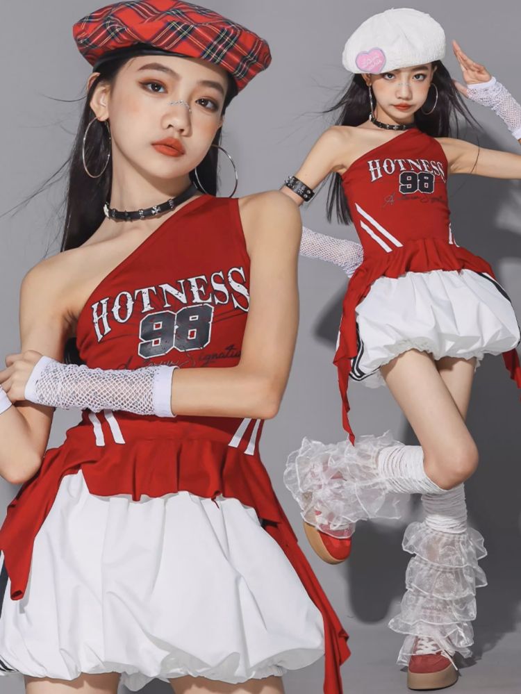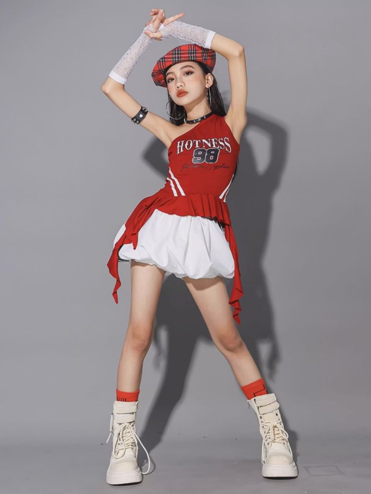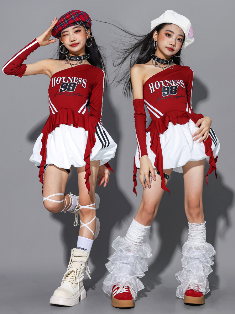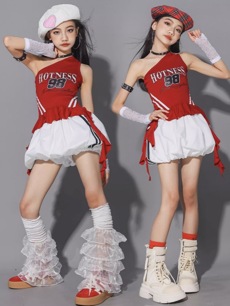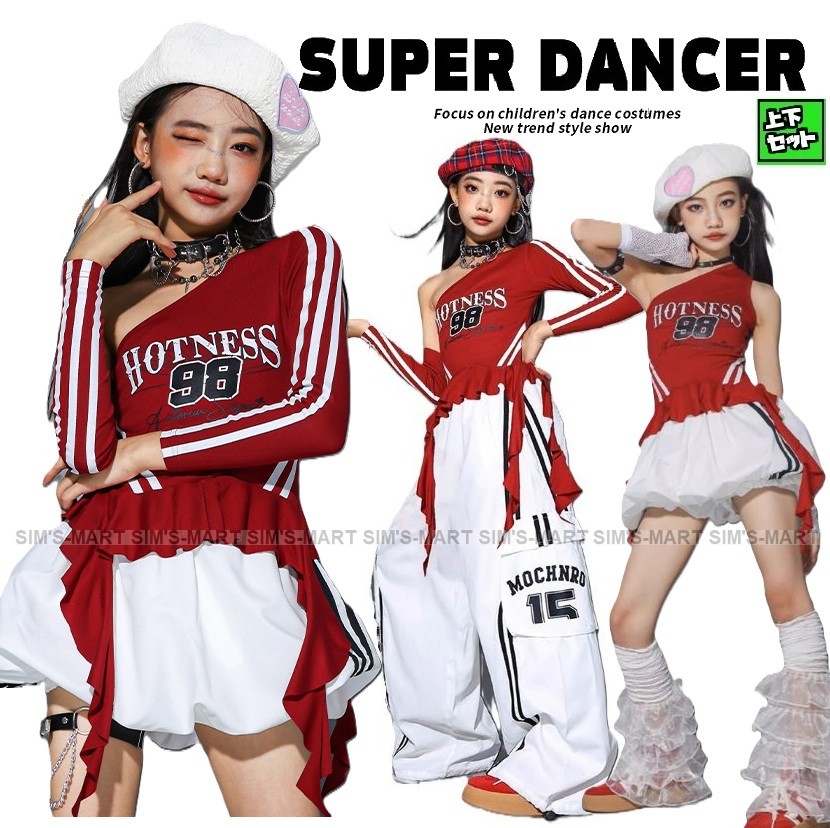 ガールズ ヒップホップ 衣装 赤 白 K-POP 韓国 チアダンス 子供ダンス服 ダンスウェア 子供ダンス服 へそ出し トップス パンツ スカート