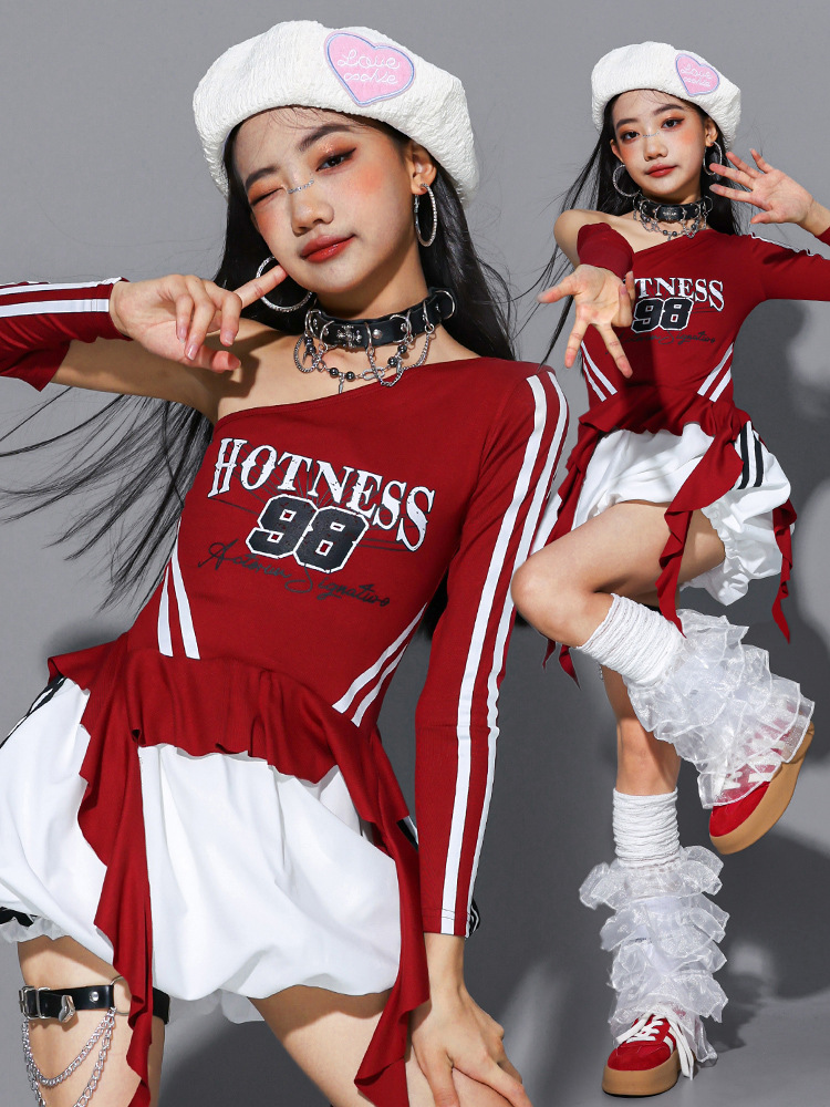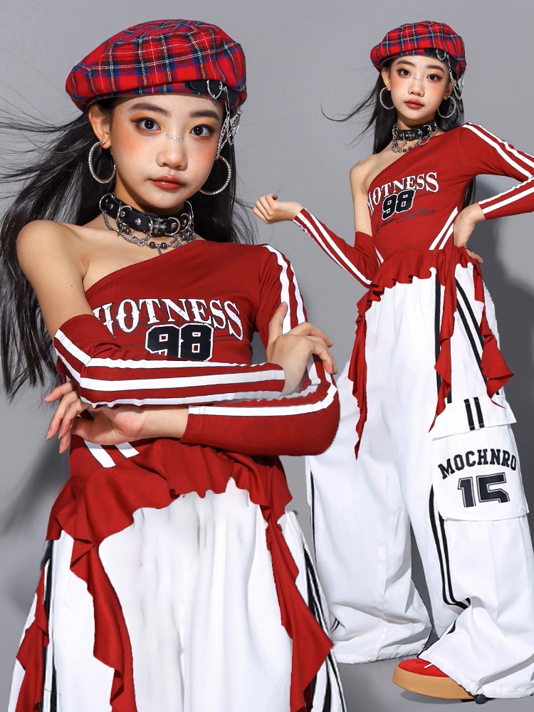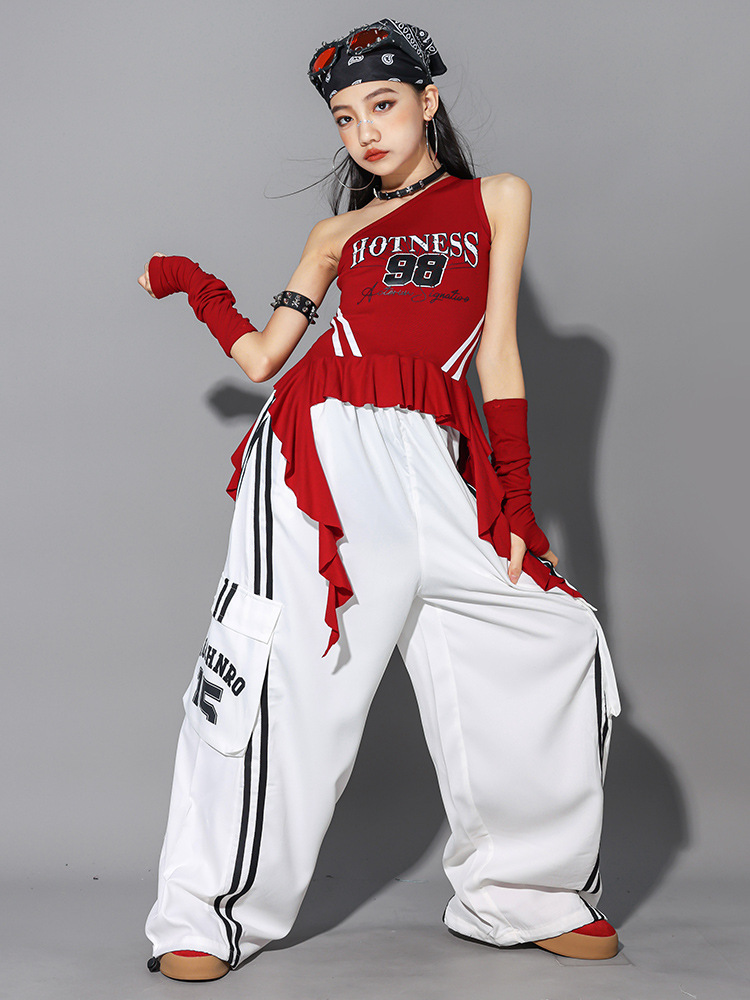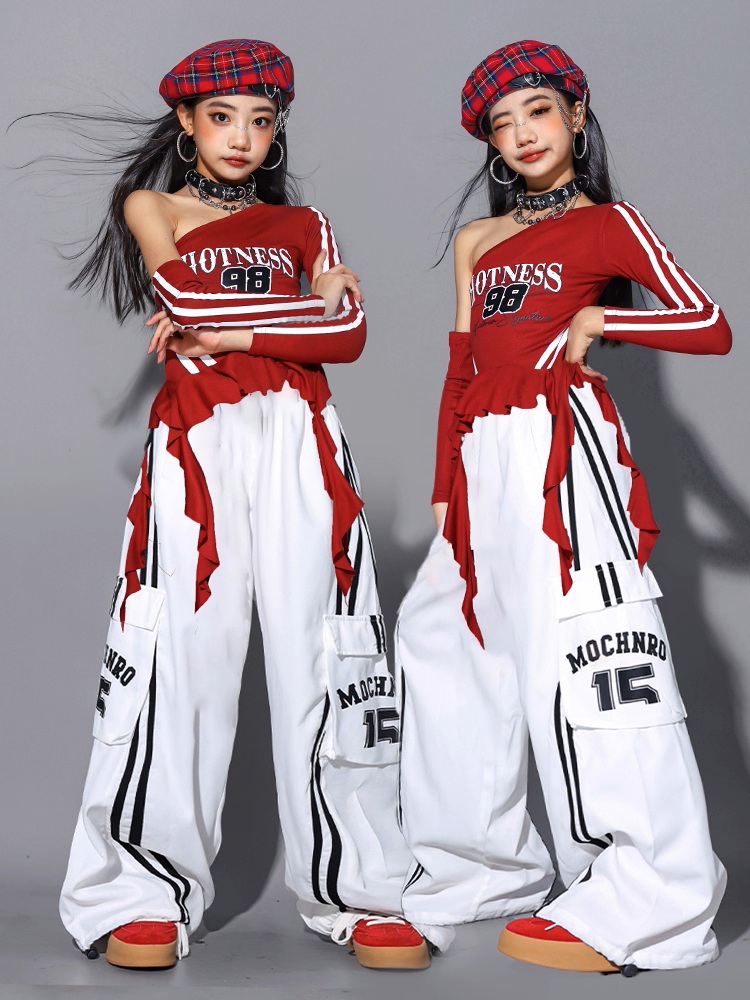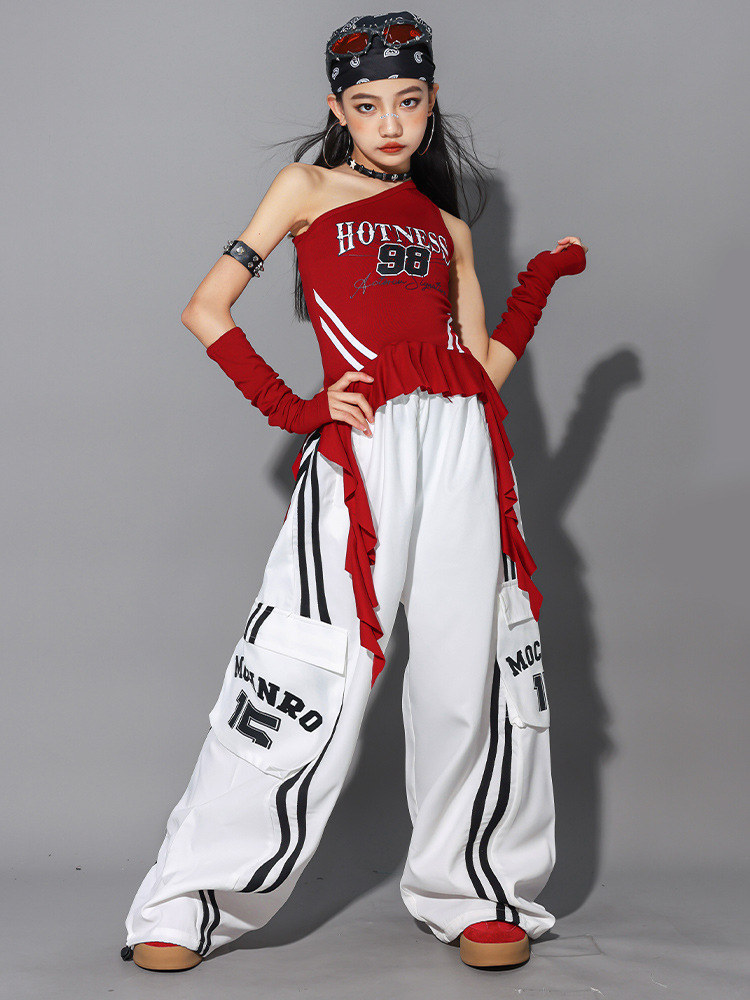 ガールズ ヒップホップ 衣装 赤 白 K-POP 韓国 チアダンス 子供ダンス服 ダンスウェア 子供ダンス服 へそ出し トップス パンツ スカート
