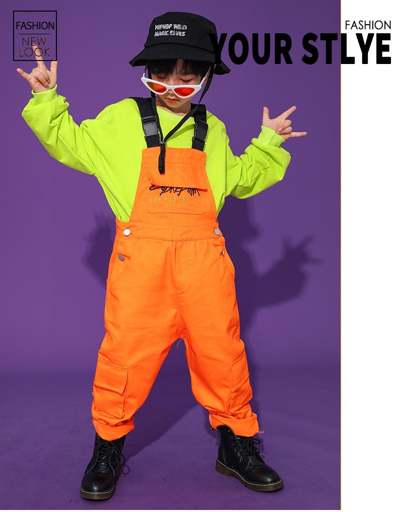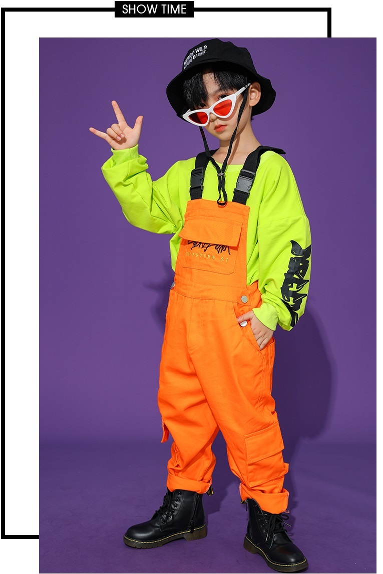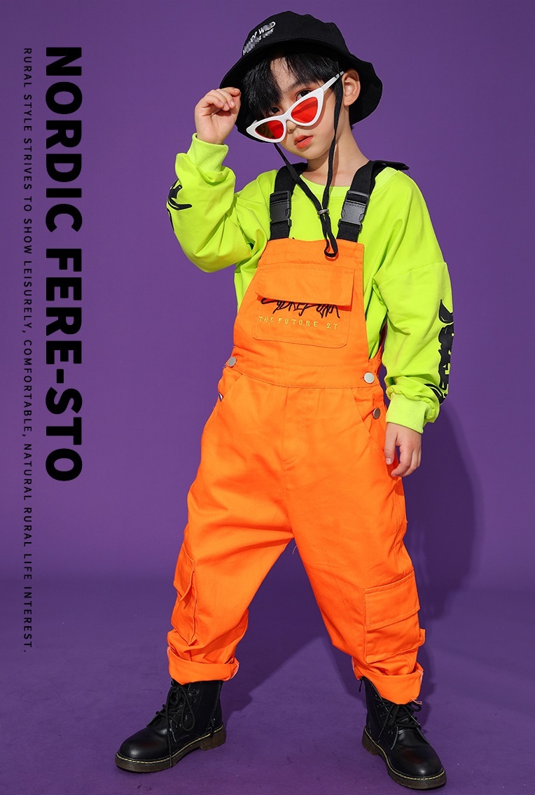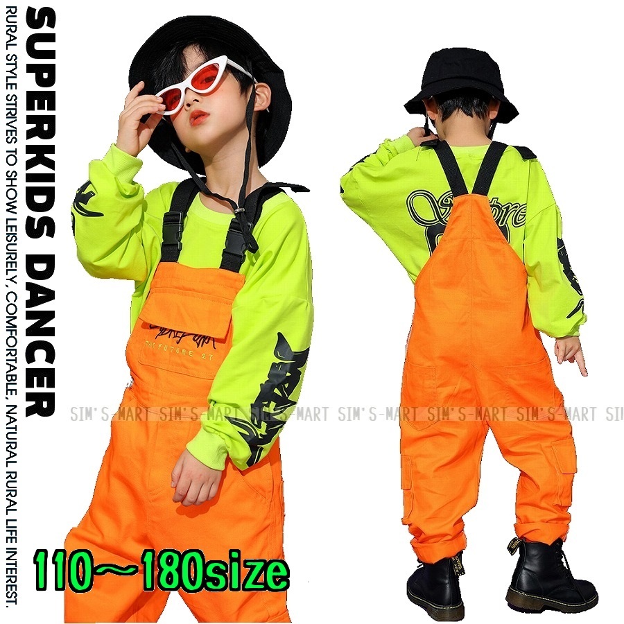 ヒップホップ,キッズダンス,HIPHOP,HIP HOP,K-POP,韓国,ガールズ,ダンスコンテスト,ダンス発表会,子供衣装,子供ダンス衣装,キッズダンス,セットアップ,ダンスファッション,つなぎ,作業服,オーバーオール,個性的,目立つ,かっこいい,オシャレ,男の子,女の子,ジュニア,110cm 120cm 130cm 140cm 150cm 160cm 170cm 180cm オレンジ