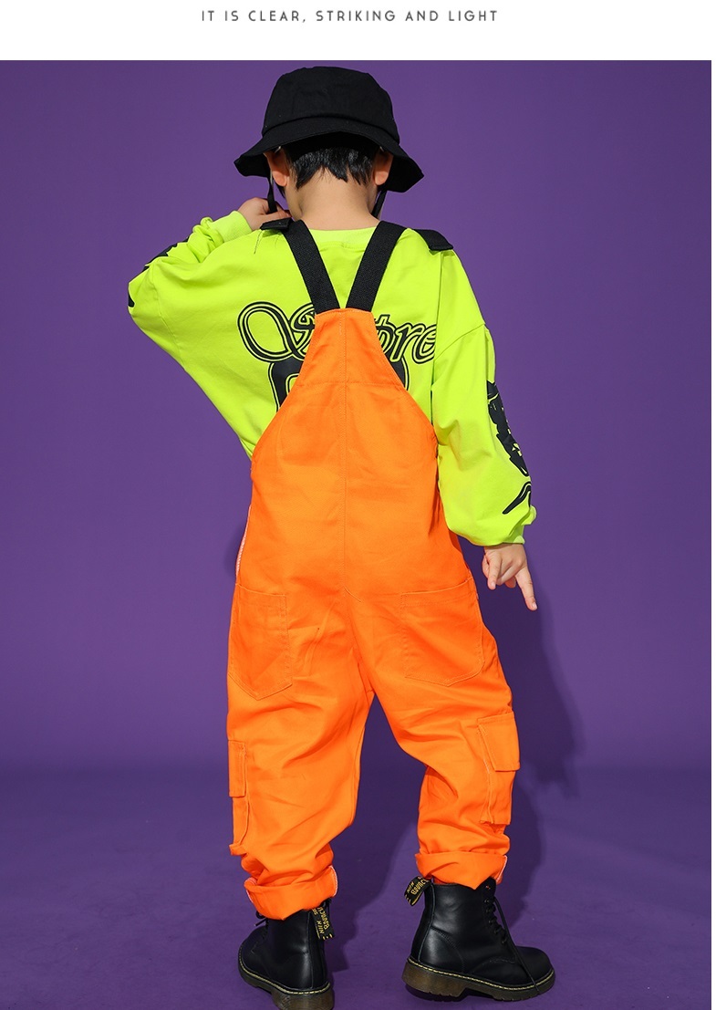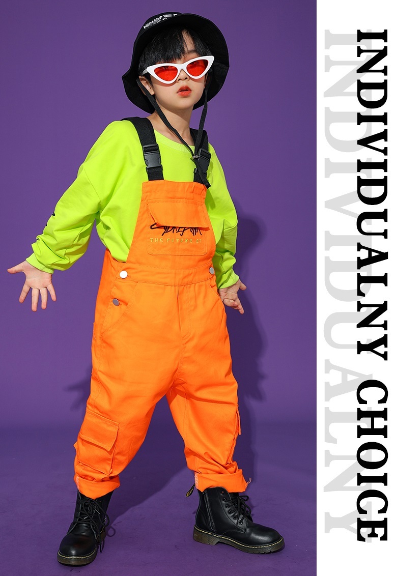 オーバーオール キッズダンス衣装 派手 つなぎ K-POP 韓国 サロペット オレンジ