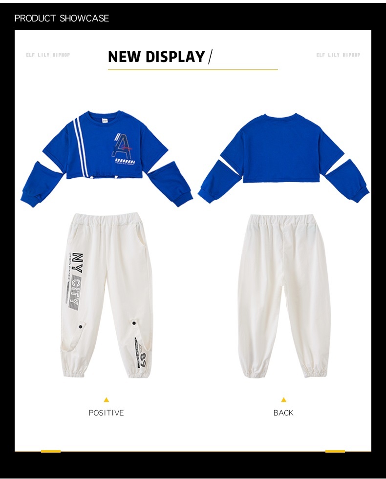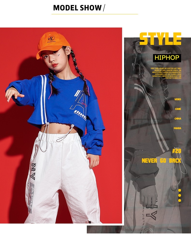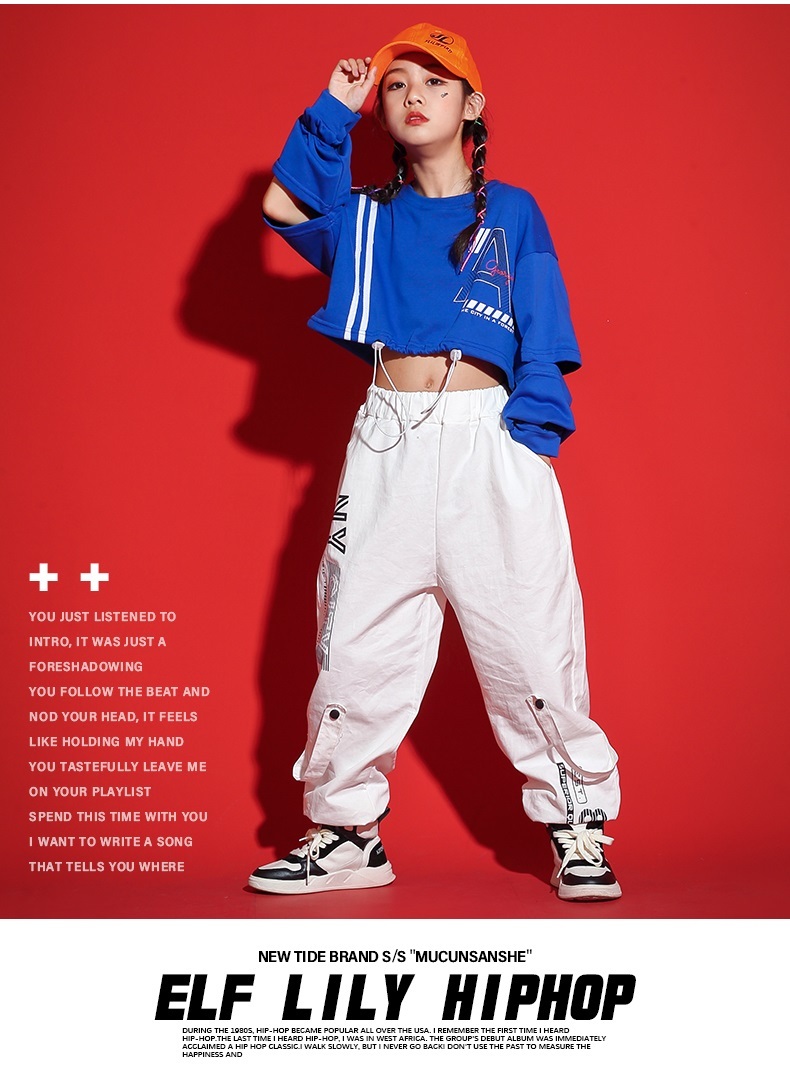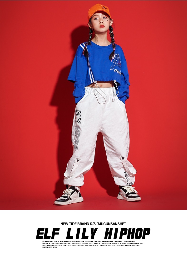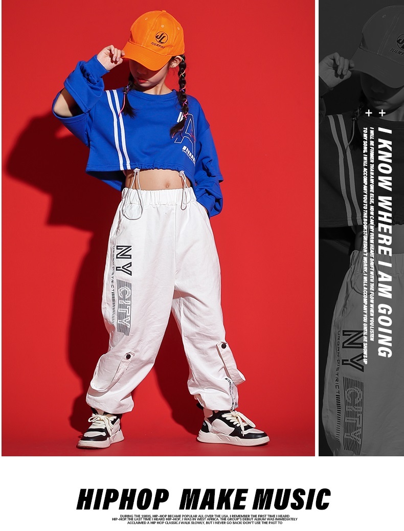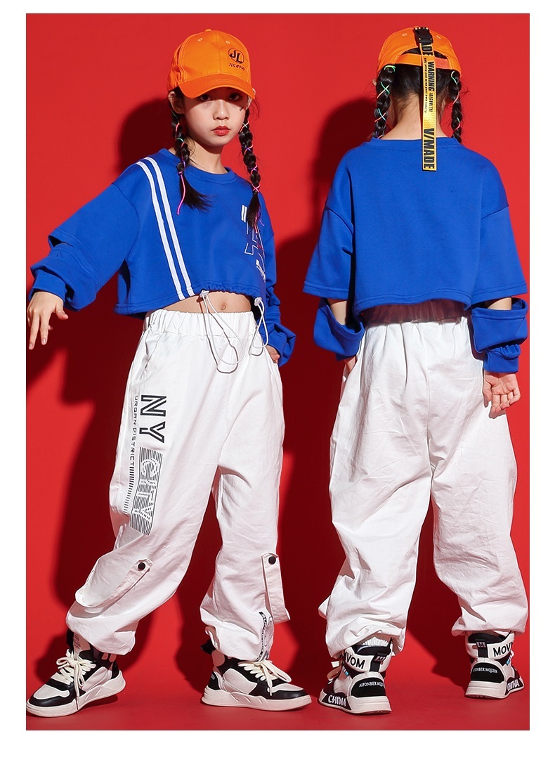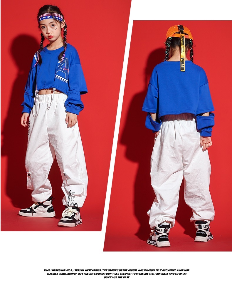 ダンス衣装 キッズ セットアップ ガールズ ヒップホップ ファッション ヘソ出しトップス パンツ 派手 ダンス衣装 K-POP 韓国 青 白