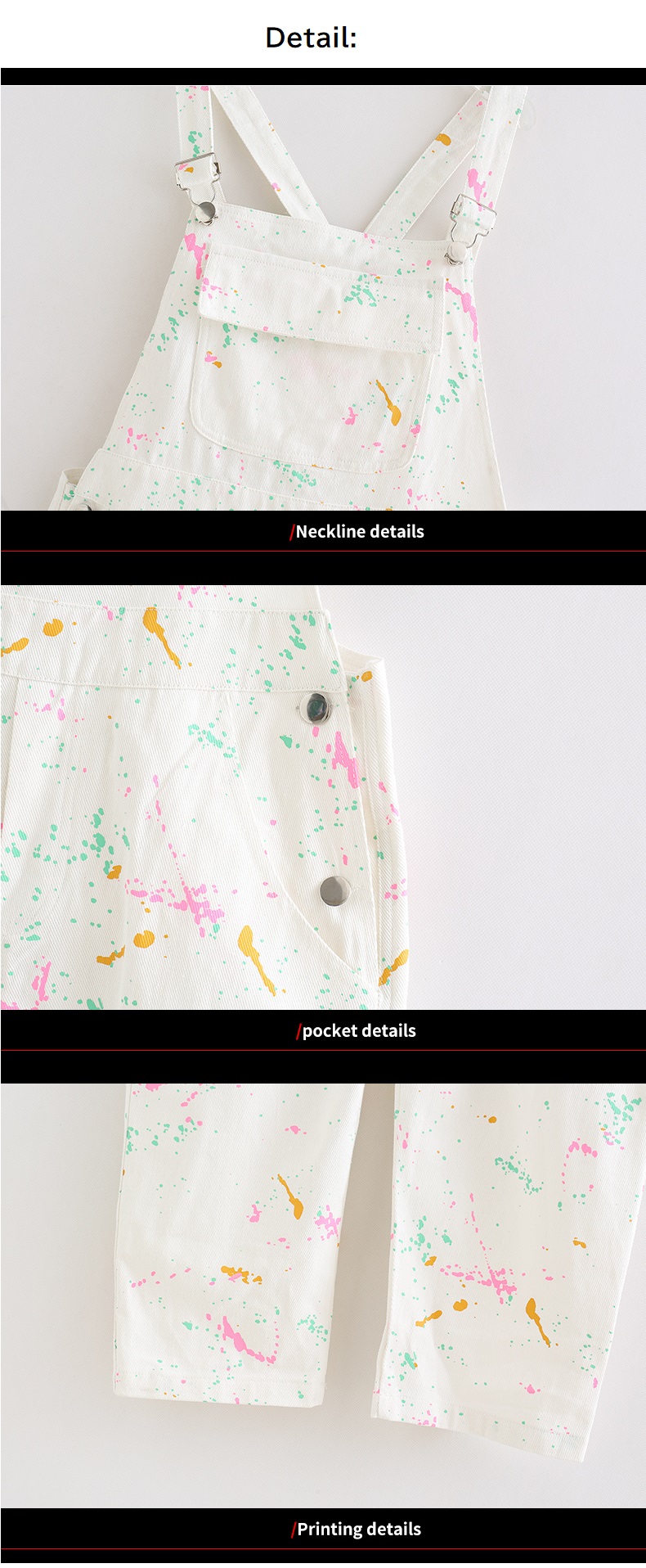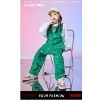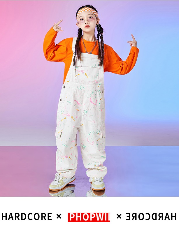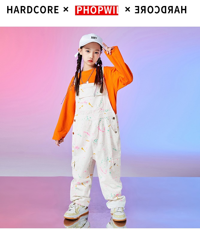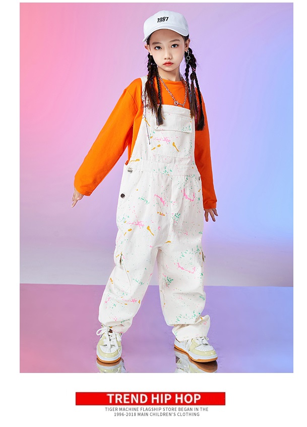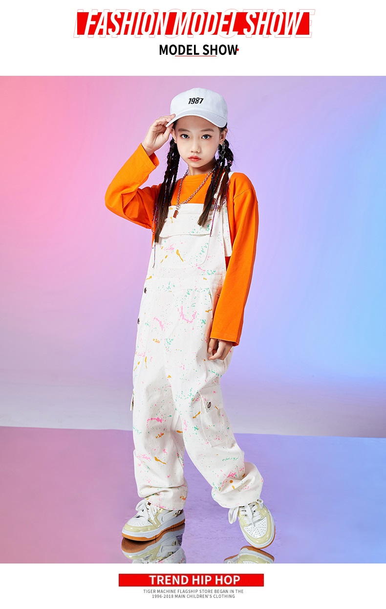 オーバーオール キッズダンス衣装 ヒップホップ ファッション ダンス衣装 キッズ 派手 つなぎ K-POP 韓国 サロペット 緑 白 ペイント柄