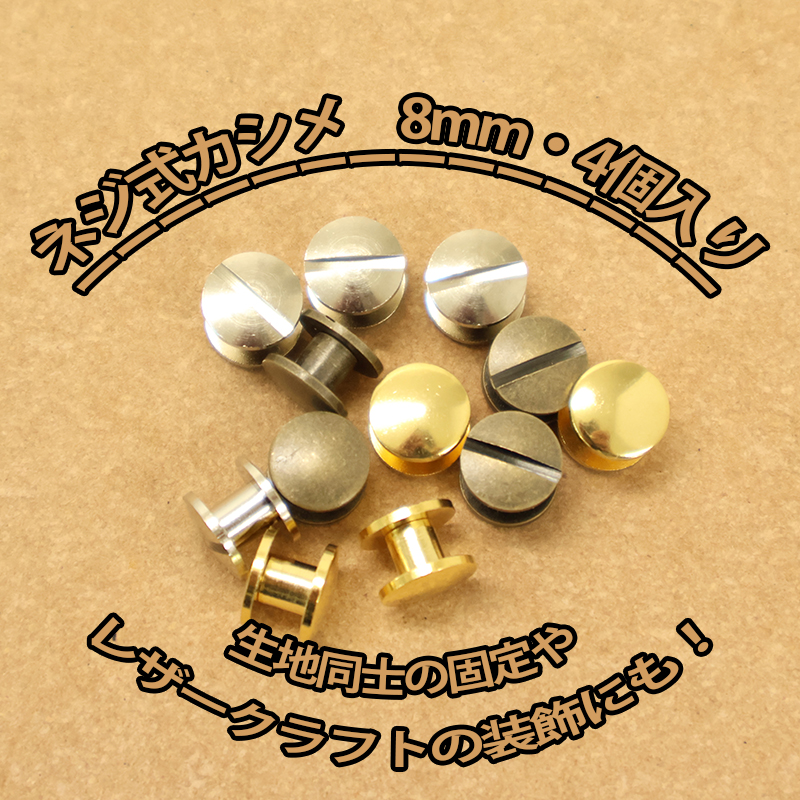 ◆ネジ式カシメ8mm・4個入(4151-1)【メール便20個まで】|ネジ式カシメ,ネジ,カシメ,組ネジ,金具,レザークラフト,真ちゅう,ハンドメイド,かしめ,メタルパーツ