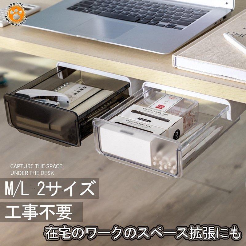 引き出し 工事不要 2個セット 1個 取り付け 文房具収納 テーブル下 整理 後付け トレー 穴あけ不要 取り付け 小物収納 スライド 台 机 テーブル