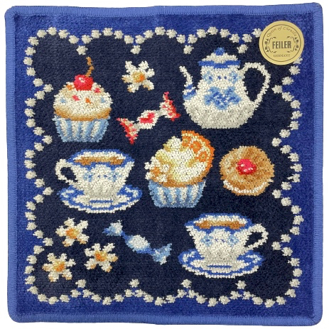 クリックポスト配送(送料198円) ラッピング不可 フェイラー ハンカチ FEILER スウィートトリート ネイビー/ブルー 25×25cm シュニール織りタオル地