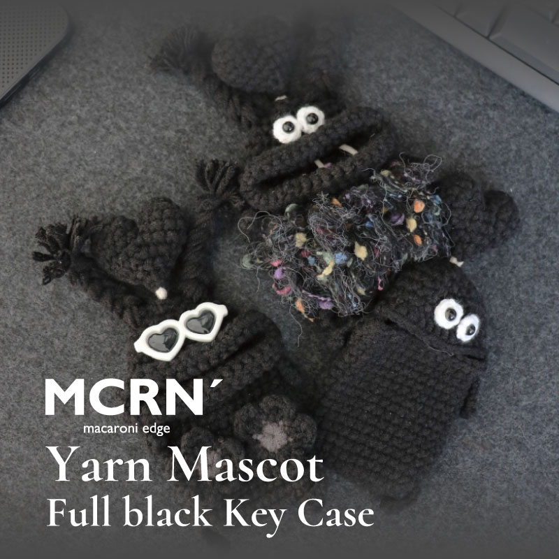 マカロニエッジの人気シリーズ"毛糸のマスコット"より、いつもの仲間たちがちょっとシックなフルブラックになって登場!愛嬌のある独特なキャラクターたちが毛糸で表現されています。紐に鍵を付けてキャラクターの中へ収納する仕様で、口から鍵を出し入れする動作は思わずフフッと笑ってしまいそうになる、なんとも言えない可愛さです。毛糸のマスコットシリーズは手作りのため1点1点表情が異なり、自分だけのモノとして愛着を持って使えるアイテムです。友人へのちょっとしたプレゼントにもおすすめです。フルブラックなので汚れも目立たなさそう…笑