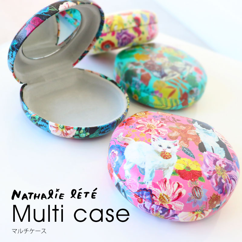 "ナタリーレテ"の独創的な世界観が溢れるマルチケース。全面に施された可愛らしいイラストは、持つだけで気分を高めてくれます。内側には鏡が付いているので、ちょっとした身だしなみチェックにも便利。裏面にはゴールドの箔押しで"Nathalie Lete"のロゴが入り、上品なアクセントになっています。アクセサリーや薬、サプリメントなど、小さなアイテムを収納するのに最適です。バッグの中に一つ入れておけば、整理整頓にも役立ちます。ナタリー・レテ好きの方にはもちろん、友人や家族へのプレゼントにもおすすめです。