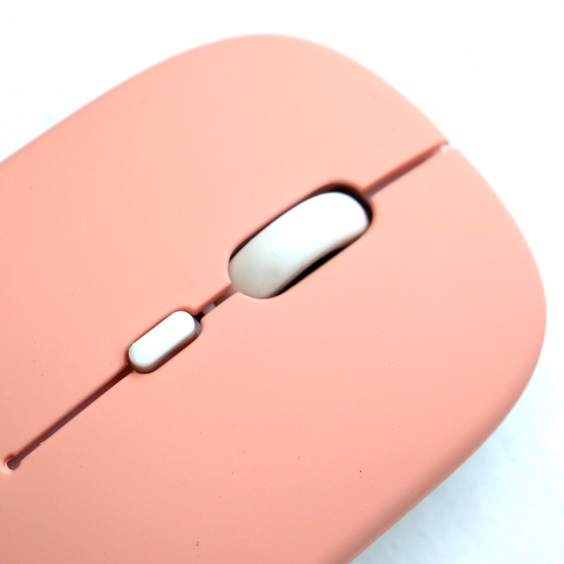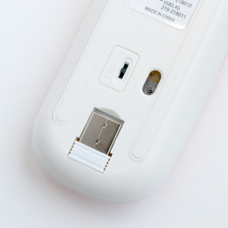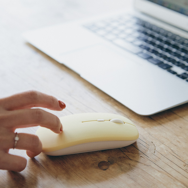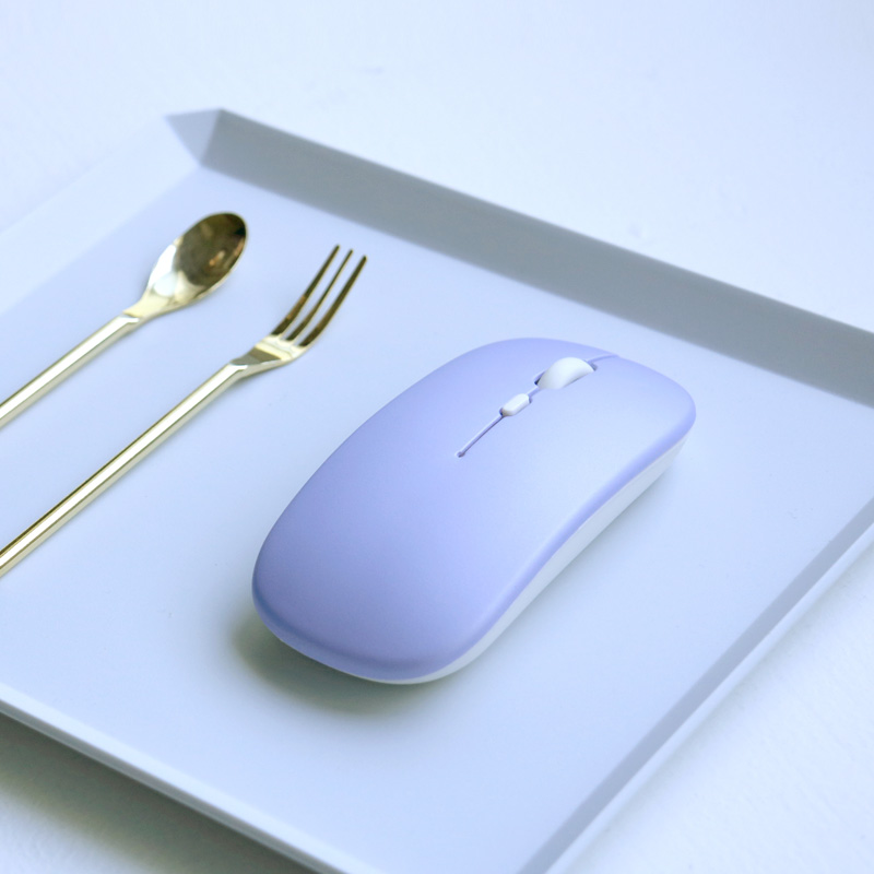 サクッと軽い操作感のマカロンマウス。落ち着いたカラーで気持ちもアップできるワイヤレスマウスです。パソコンのUSBポートにレシーバーを挿すだけで簡単に接続でき、マウス本体に収納することも可能です。充電時間は約4時間で、連続使用時間は約70時間となります。デザインは薄型でケーブルの絡まりや断線の心配がなく、持ち運びにも適しています。カチカチという操作音がならない静音スイッチを採用。クリック音が気にならないため、カフェや図書館・テレワークにもおすすめです。