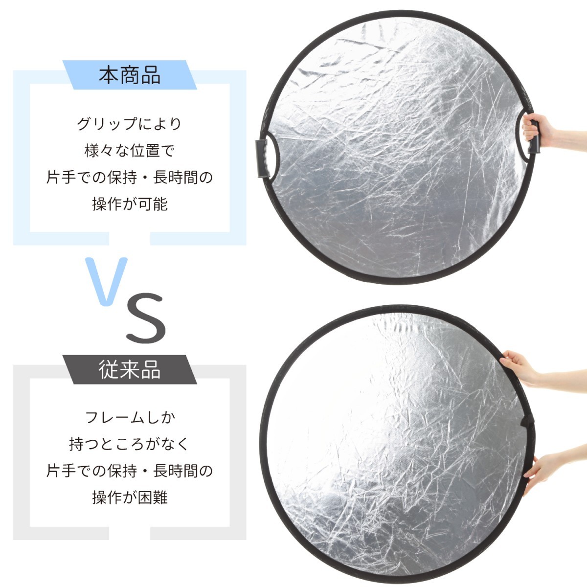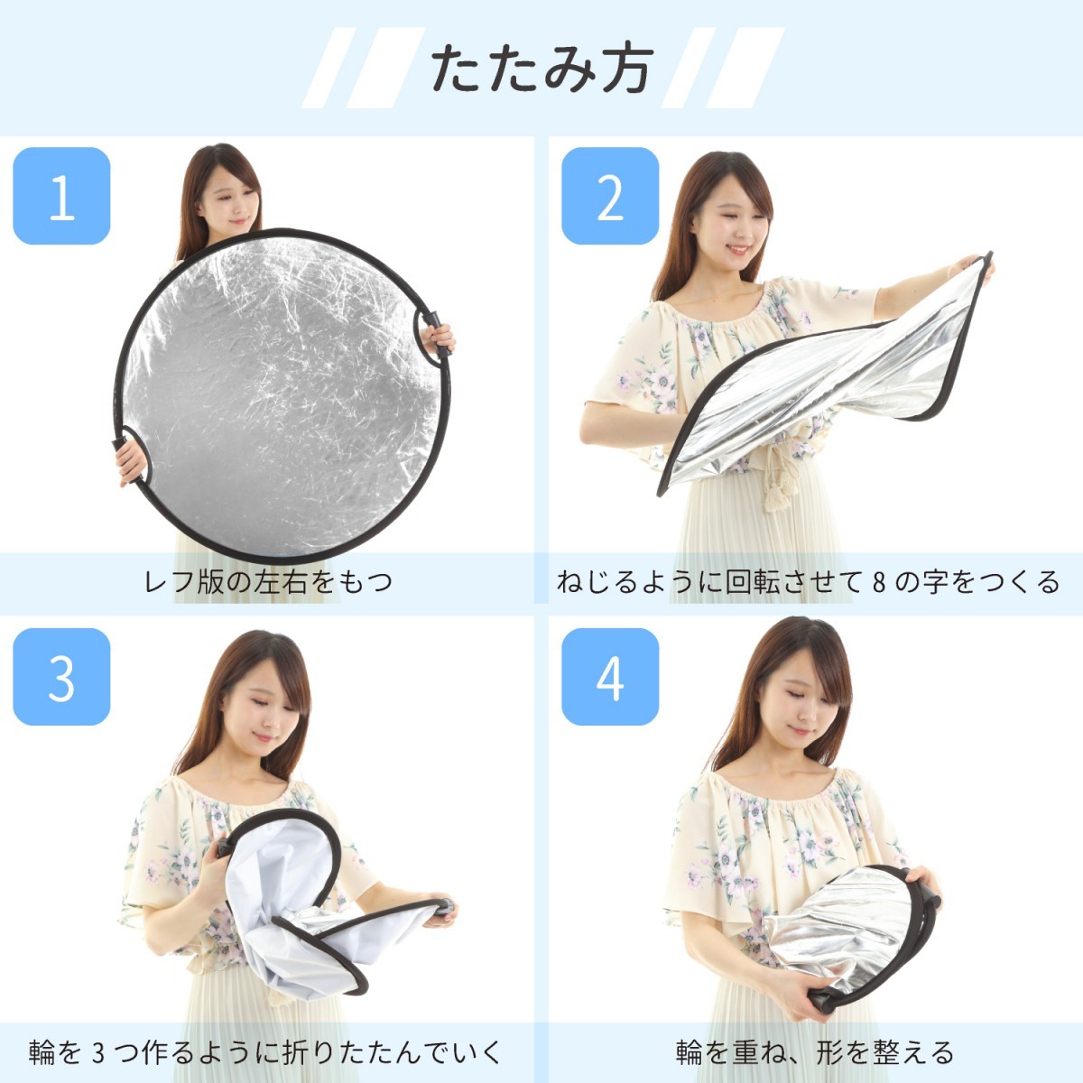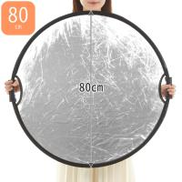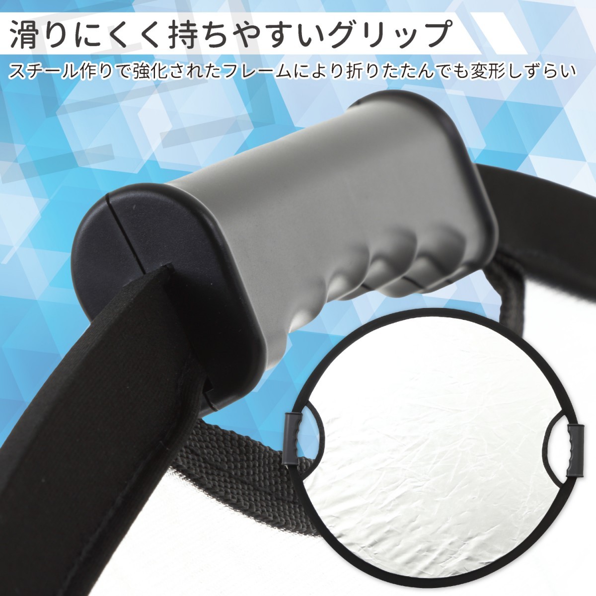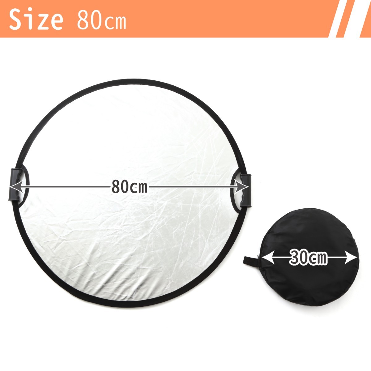 レフ板 丸レフ板 80cm 商品撮影 人物撮影 屋内撮影 屋外撮影 撮影用 反射板 リフレクター コンパクト ハンドル付き 折りたたみ 銀白 ポーチ付き クロス付き