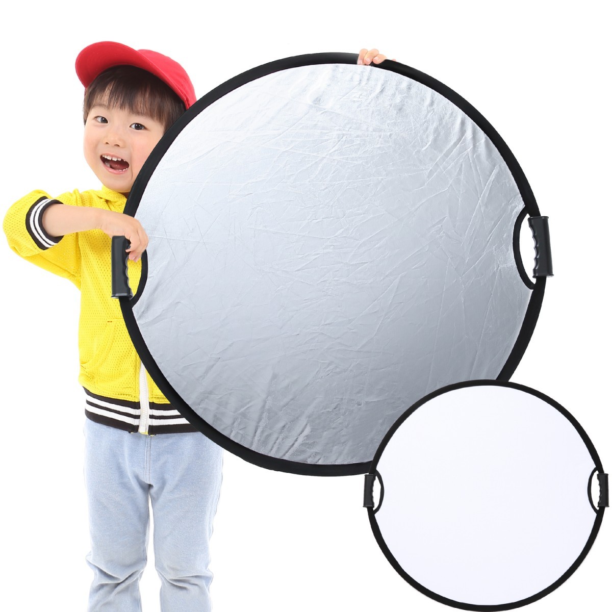 レフ板 丸レフ板 60cm 商品撮影 人物撮影 屋内撮影 屋外撮影 撮影用 反射板 リフレクター コンパクト ハンドル付き 折りたたみ 銀白 ポーチ付き クロス付き