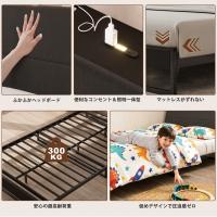 ファブリックローベッド セミダブル 連結ベッド 布張りベッドフレーム LEDライト&コンセント付き 宮棚付き 傾斜クッションヘッドボード フロアベッド 爆買