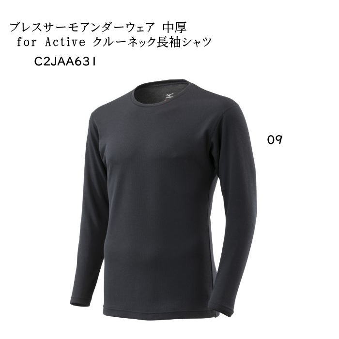 ミズノ C2JAA631 ブレスサーモアンダーウェア 中厚 for Active クルーネック長袖シャツ[メンズ] メール便配送(ポスト投函)選択で送料無料 2024秋冬
