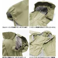 ■生地は軽くしなやかな防水透湿性素材ハイベント2.5層構造。肌触りがよいビーズ加工が施された透明ラミネートフィルム「Clear-D」が採用されています。