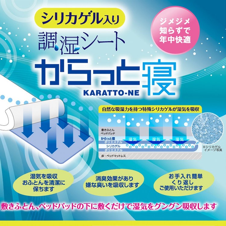 そんな時は「からっと寝」除湿シートを敷ふとんやベッドパッドの下に敷くだけ。