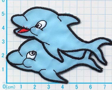 アイロンワッペン/刺繍/アップリケ/ペアイルカ/水色/動物/海/水泳/水族館