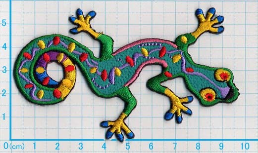アイロンワッペン/刺繍/アップリケ/アートトカゲ/緑/動物/とかげ/ヤモリ/爬虫類
