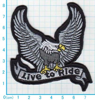 アイロンワッペン/刺繍/アップリケ/イーグルLive to Ride/動物/ワシ/鳥/バイク
