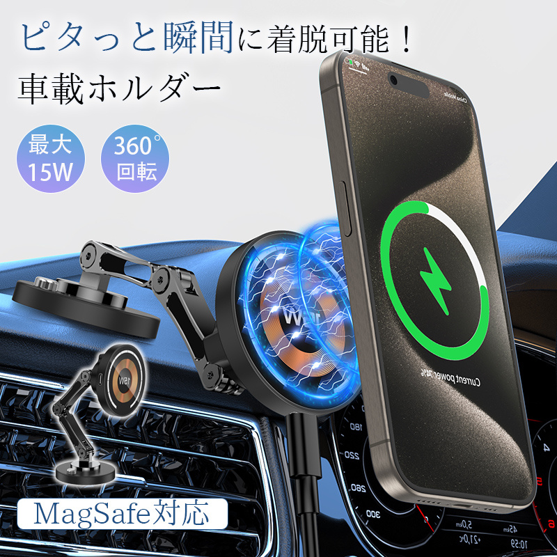車載ホルダー ワイヤレス充電器 携帯充電器 スマホホルダー マグネット magsafe 磁石 車載充電器 急速充電 15w 超強力 車 ホルダー 携帯スタンド