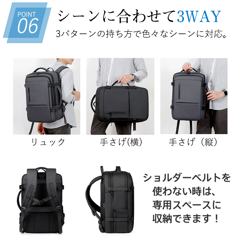 リュック メンズ リュックサック ビジネスリュック 防水 拡張 3WAY 軽量 大容量 通勤 通学 ビジネス バックパック 通学 出張 日常 旅行