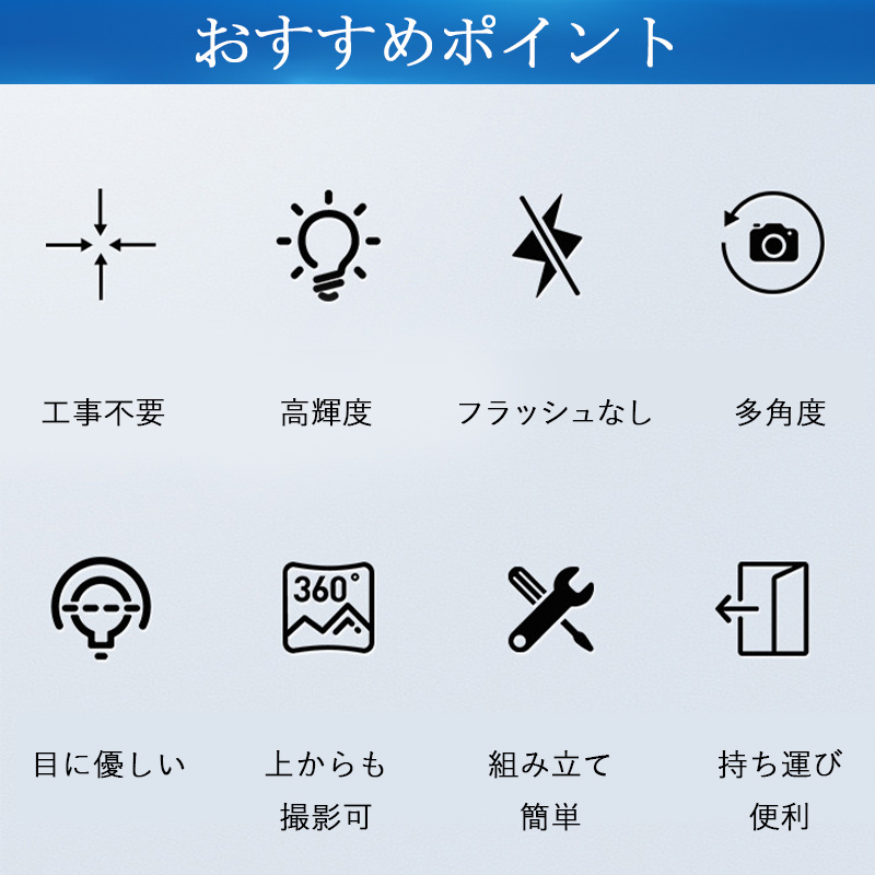 ※ライトの点灯には別途USB電源が必要です。12W(5V/2.4A)以上出力のモバイルバッテリー・USB充電器などをご使用ください。PCのUSBや5-10W(5V/1.0-2.0A)程度の充電器では低出力なのでライトが十分に点かない場合がございます。