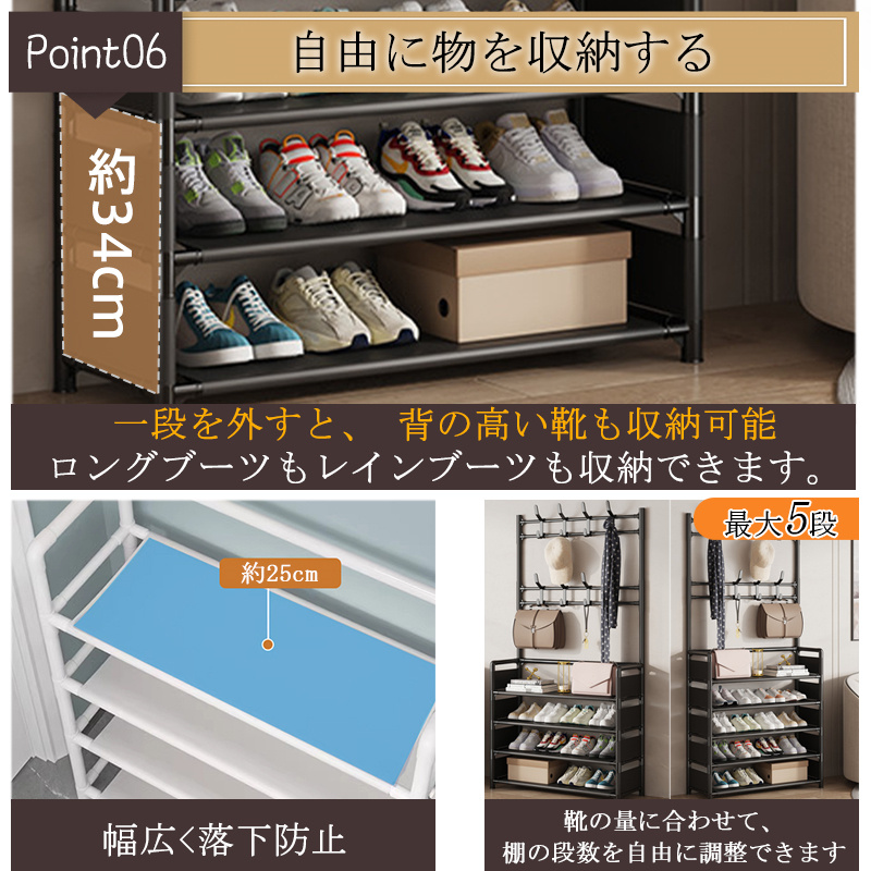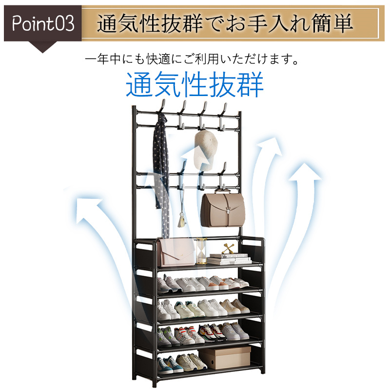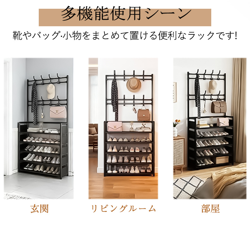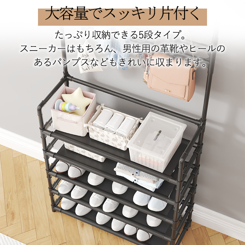シューズラック 靴箱 下駄箱 簡易シューズラック スリム 省スペース くつ 玄関棚 シューズケース 幅60cm 5段 簡易シューズラック 収納ボックス 靴棚 組立て式 多層 防塵 玄関 通気性優れ 収納 オープン式 ケース 新生活 コンパクト 大容量 軽量 おしゃれ 組み立て 小物置き 靴入 帽子掛け 帽子収納 キャップ かばんかけ 自立型コートラック フック付き 多機能 組み立て簡単 収納家具 収納グッズ