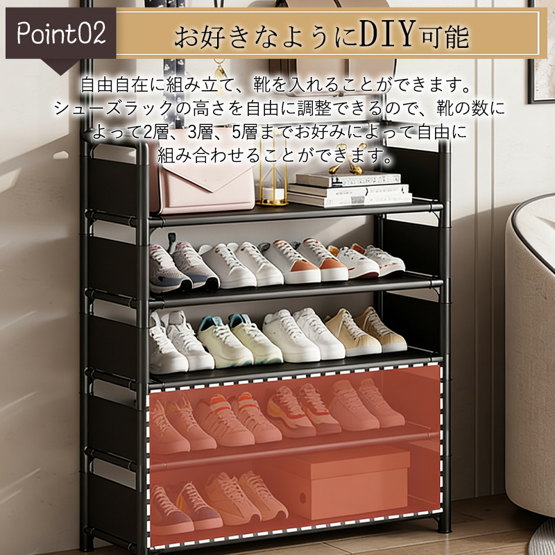 シューズラック スリム 玄関収納 省スペース 靴箱 下駄箱 幅60cm 5段 簡易シューズラック 収納ボックス 靴棚 組立て式 多層 防塵 玄関