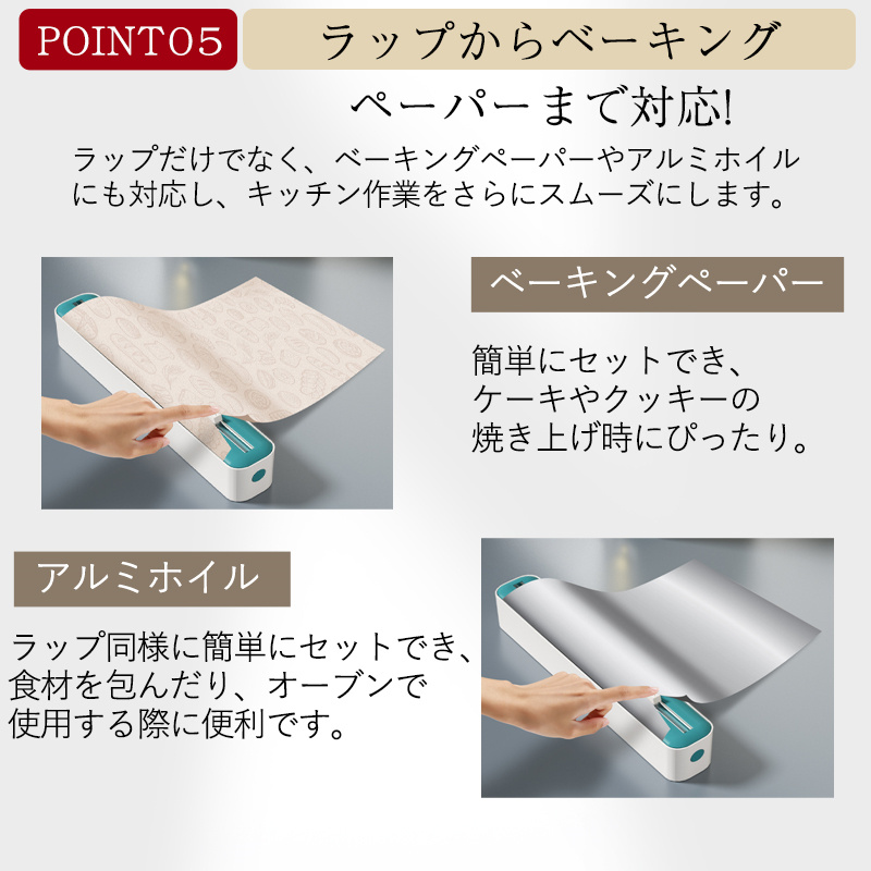 ラップカッター ラップケース ラップホルダー クッキングシート キッチン 双方向切断 冷蔵庫 マグネット キッチン箔 フィルムディスペンサー 磁気吸着 壁掛け可能 フィルムディスペンサー スライドカッター付きラップケース キッチンラップ ペーパー 収納可能 滑り止め設計 ラップホルダー ラップケース キッチン便利