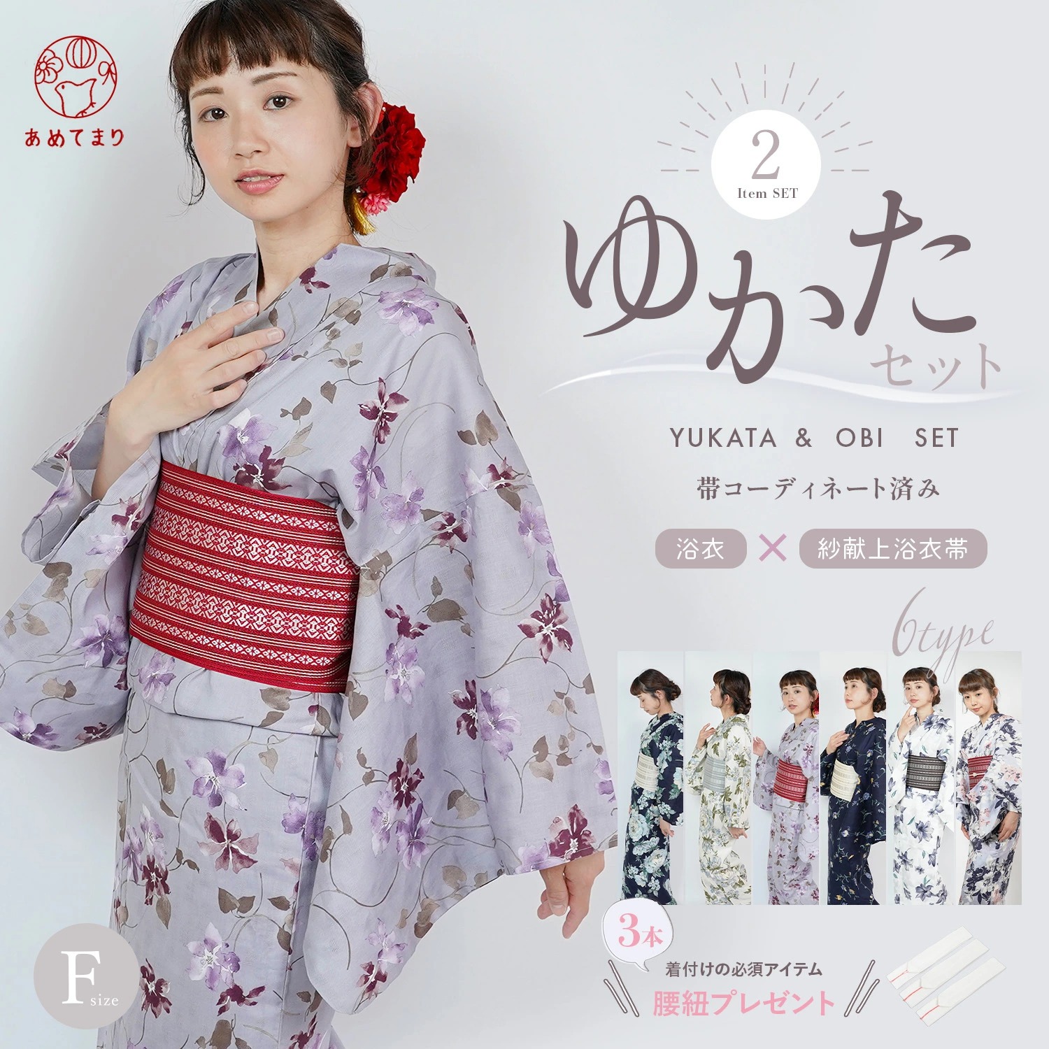 ※こちらの商品は、浴衣・帯の2点セットです。プラス腰紐3本をプレゼントでお付けいたします。セット内容の変更・値引きは承っておりません。