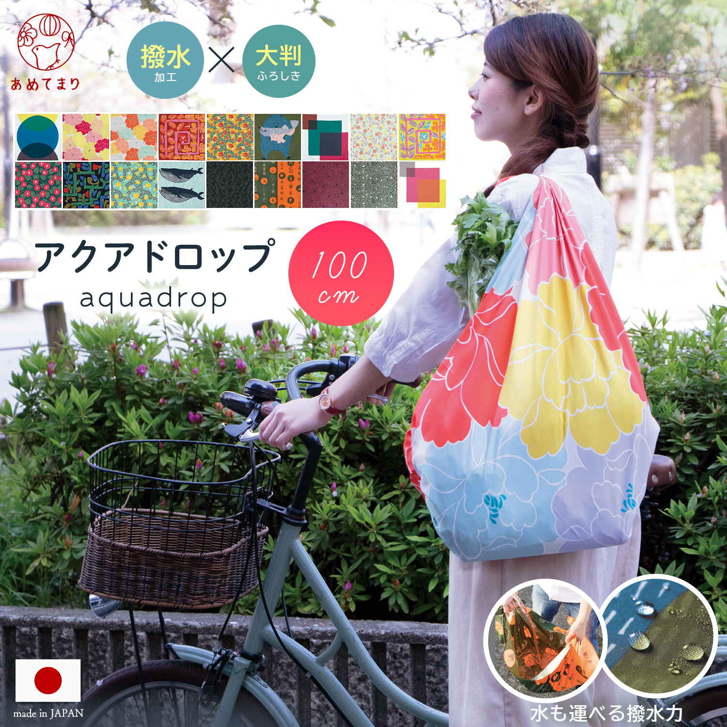 アクアドロップ 風呂敷 大判 むす美 撥水 100cm 日本製 防災 対策 ふろしき ポリエステル 雨除け 防水 katakata 鈴木マサル 正規品