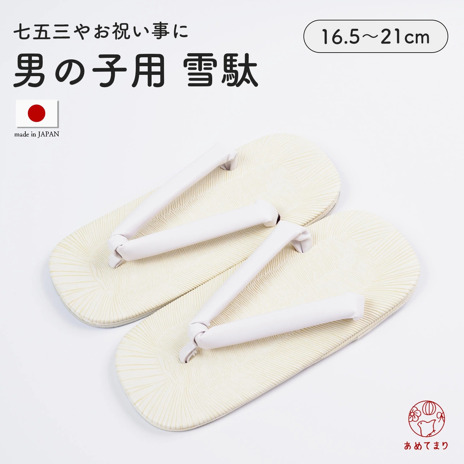 七五三やお祝い事に使われる定番の白鼻緒の雪駄です。