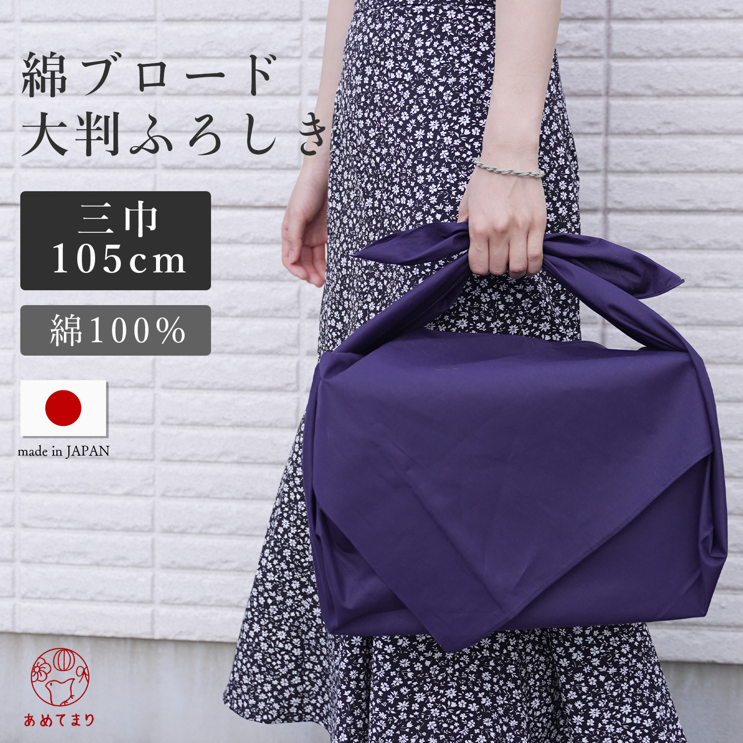 綿ブロード 風呂敷 【三巾】大判 105cm 日本製 綿100% 無地 紺 慶弔 内祝い 結婚式 引出物 ギフト おしゃれ エコバッグ 通年用 慶弔両用 女性 男性 送料無料