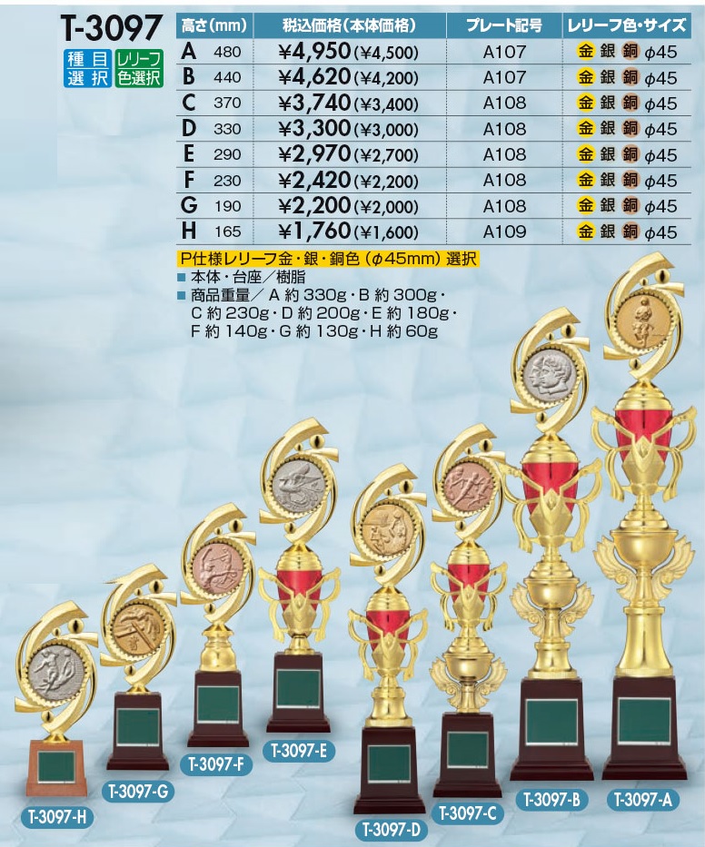 T-3097-H〜A レリーフ選択トロフィー 右の確認事項にてサイズを変更下さい。全て定価の30%OFF