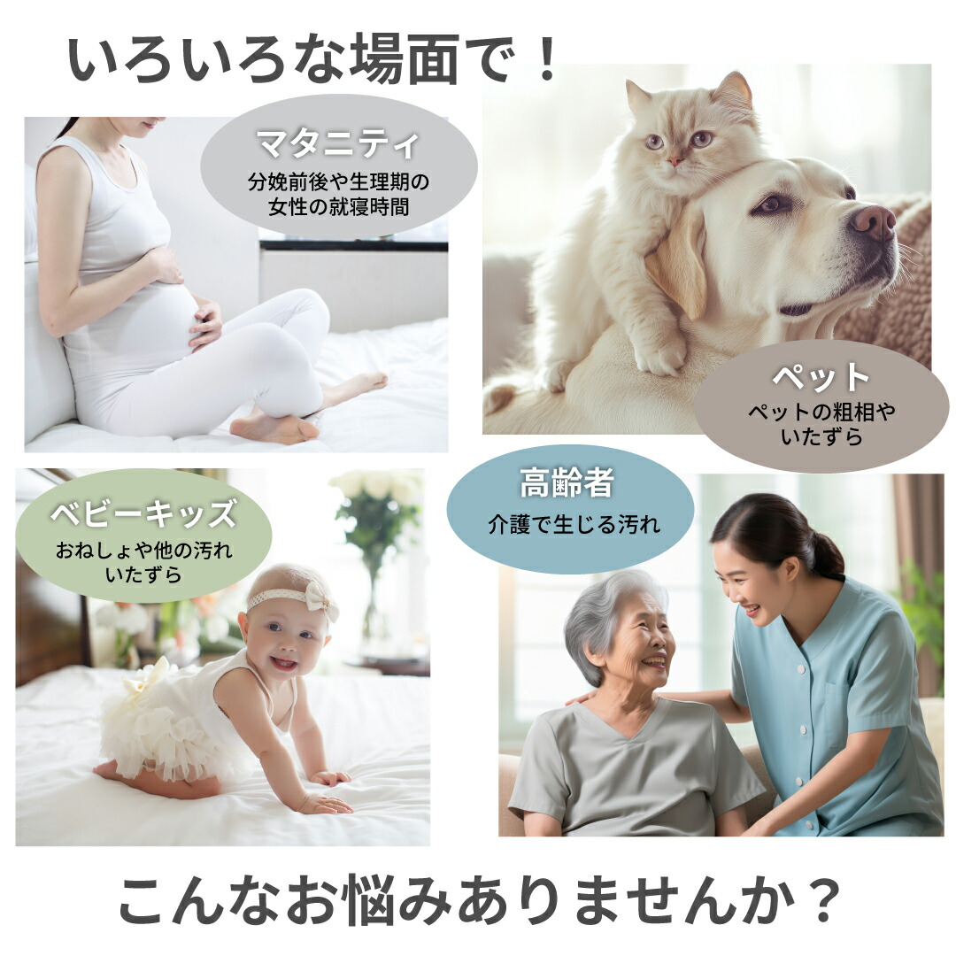 おねしょ対策、介護、ペットの粗相対策など、多目的に活躍する防水シーツです。