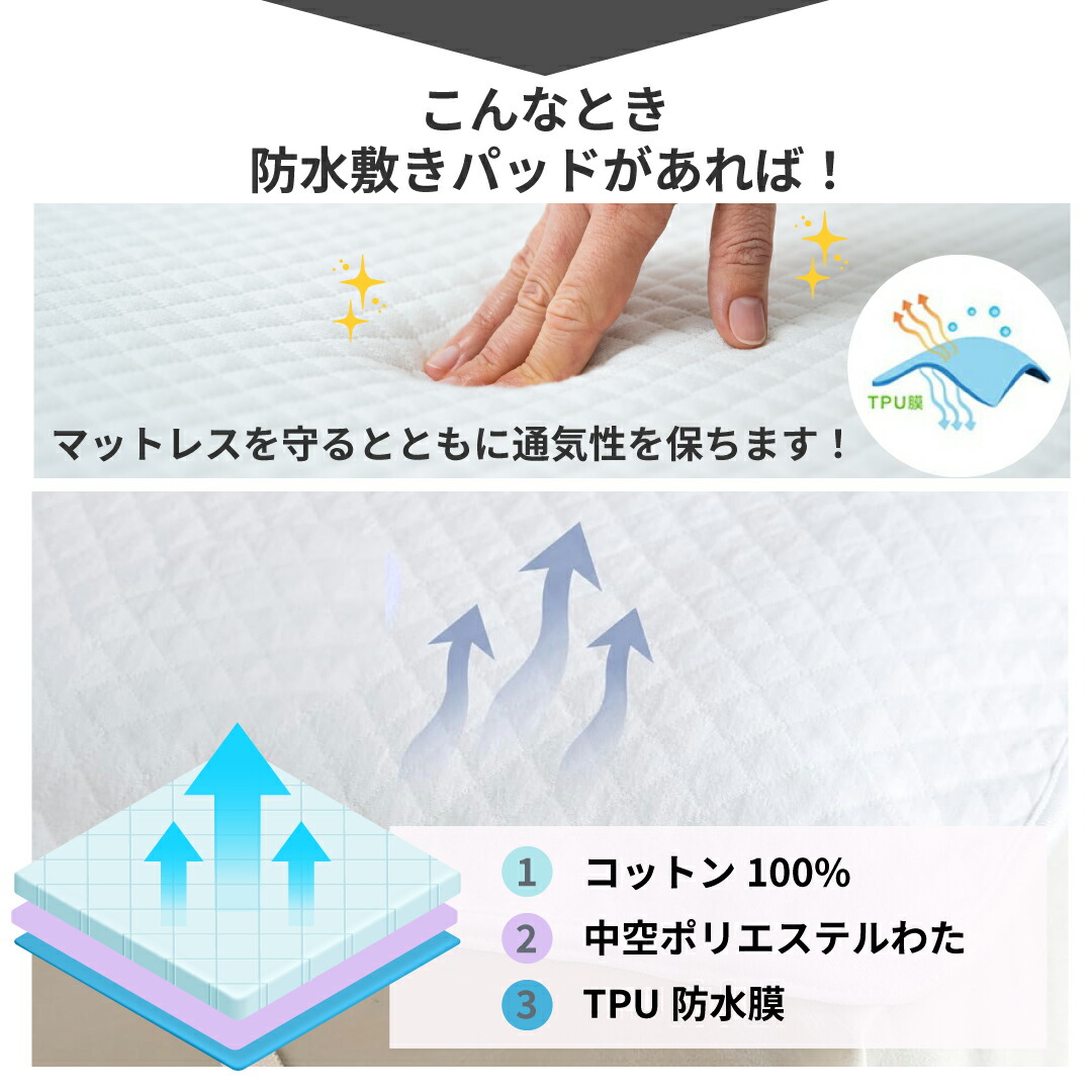 寝具の快適さと安心を両立した、家族みんなで使える高機能防水敷きパッドです。