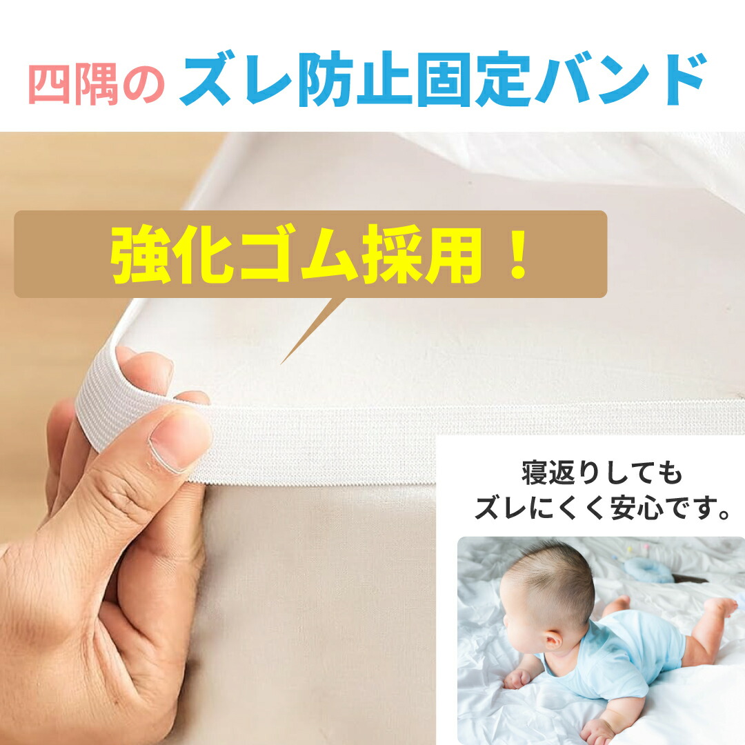 ベッドや敷き布団にフィットしやすく、寝返りしてもズレにくい仕様です。