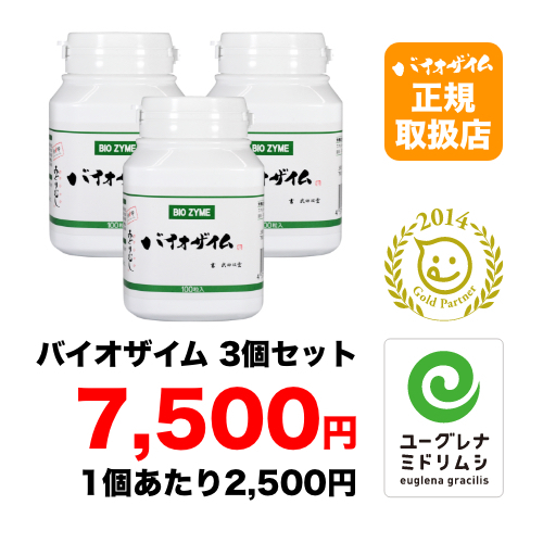 当店は、話題のユーグレナ(ミドリムシ)サプリメントバイオザイム(BIOZYME)の正規販売店です。当店は、オンラインショッピング最安値を目指して販売いたしております。全て正規品になりますので安心してご購入ください。3個セットになります。