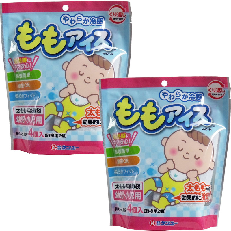 やわらか冷感 ももアイス 太ももの冷却袋 幼児・小児用 4個入 (2点セット) ケンユー
