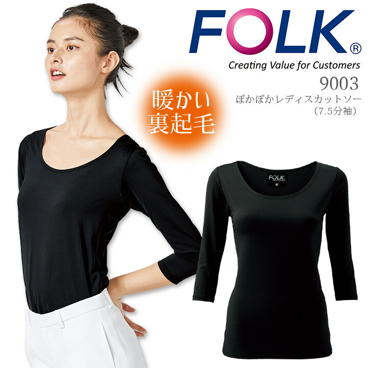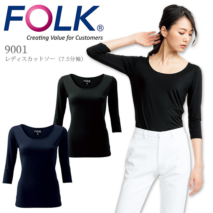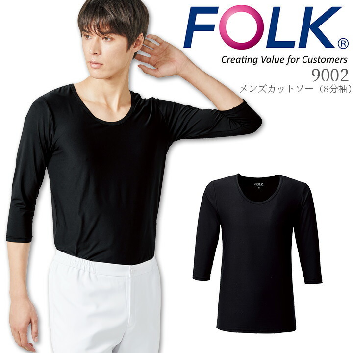 メンズカットソー(8分袖) FOLK 9002 アンダーウェア 男性用 インナーウェア アンダーシャツ スクラブインナー 病院 看護師 医者 介護士 クリニック 医療用白衣