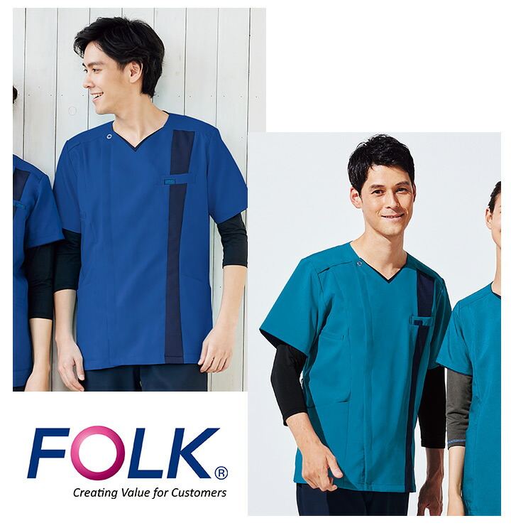 メンズカットソー(8分袖) FOLK 9002 アンダーウェア 男性用 インナーウェア アンダーシャツ スクラブインナー 病院 看護師 医者 介護士 クリニック 医療用白衣 ナース 八分袖 フォーク