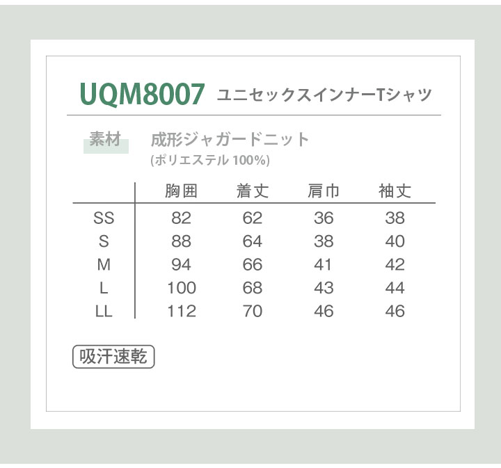 医療用 ユニセックス インナーTシャツ 七分袖 UQM8007 吸汗速乾 Vネック ルコック 看護師 医者 介護士 病院 レディース メンズ アンダー【送料無料】