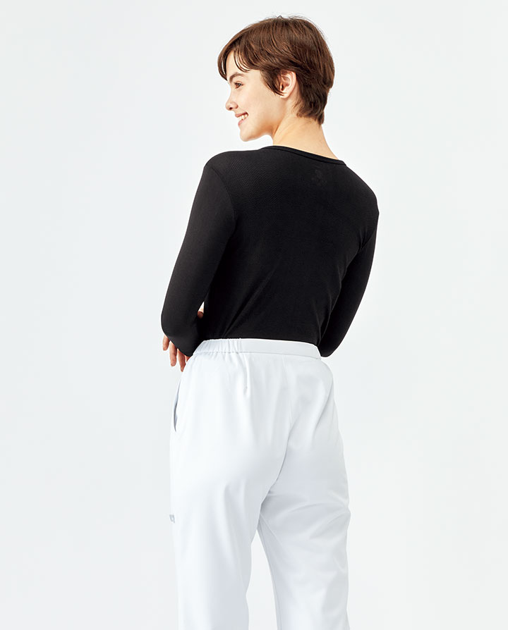 温度調節にうれしい快適インナー。首元からインナーが見えづらいVネックタイプ。