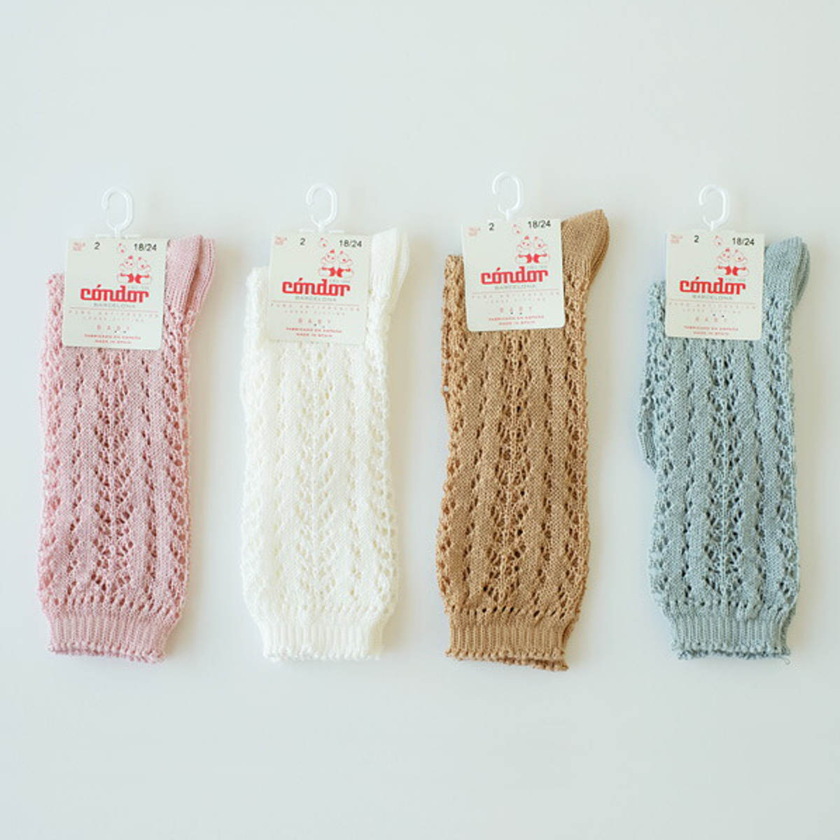 どのテイストのお洋服にも合わせやすいベーシックな透かし編みのデザインです。普段着からお出かけ時まで、足元を可愛く演出してくれるアイテムです。