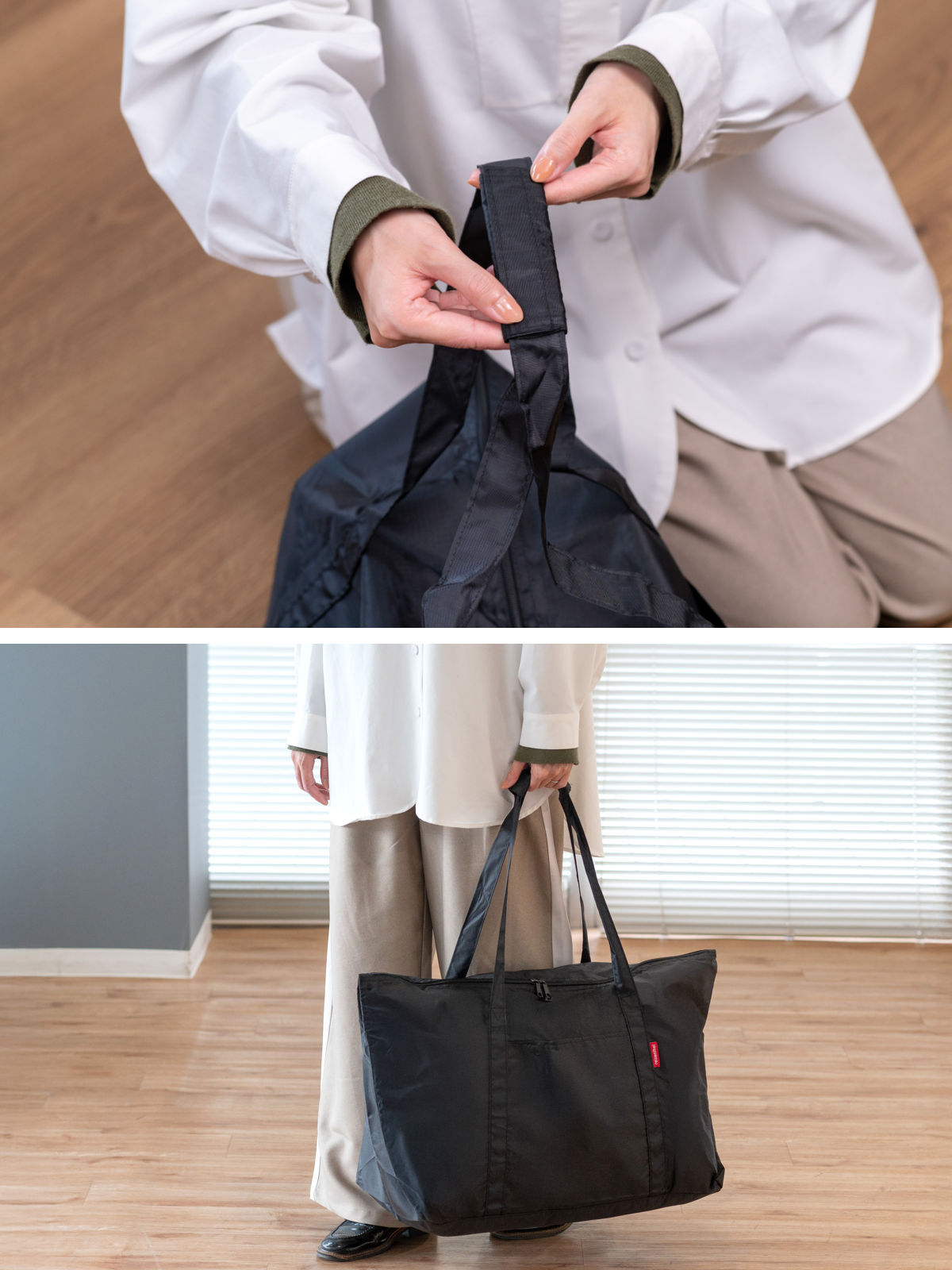 ペタンとコンパクトにできて、気軽に持ち運べるトラベルバッグ。エコバッグやサブバッグとしてもおすすめで、バッグやキャリーケースに1つ入れておくと急に荷物が増えた時などに重宝します。