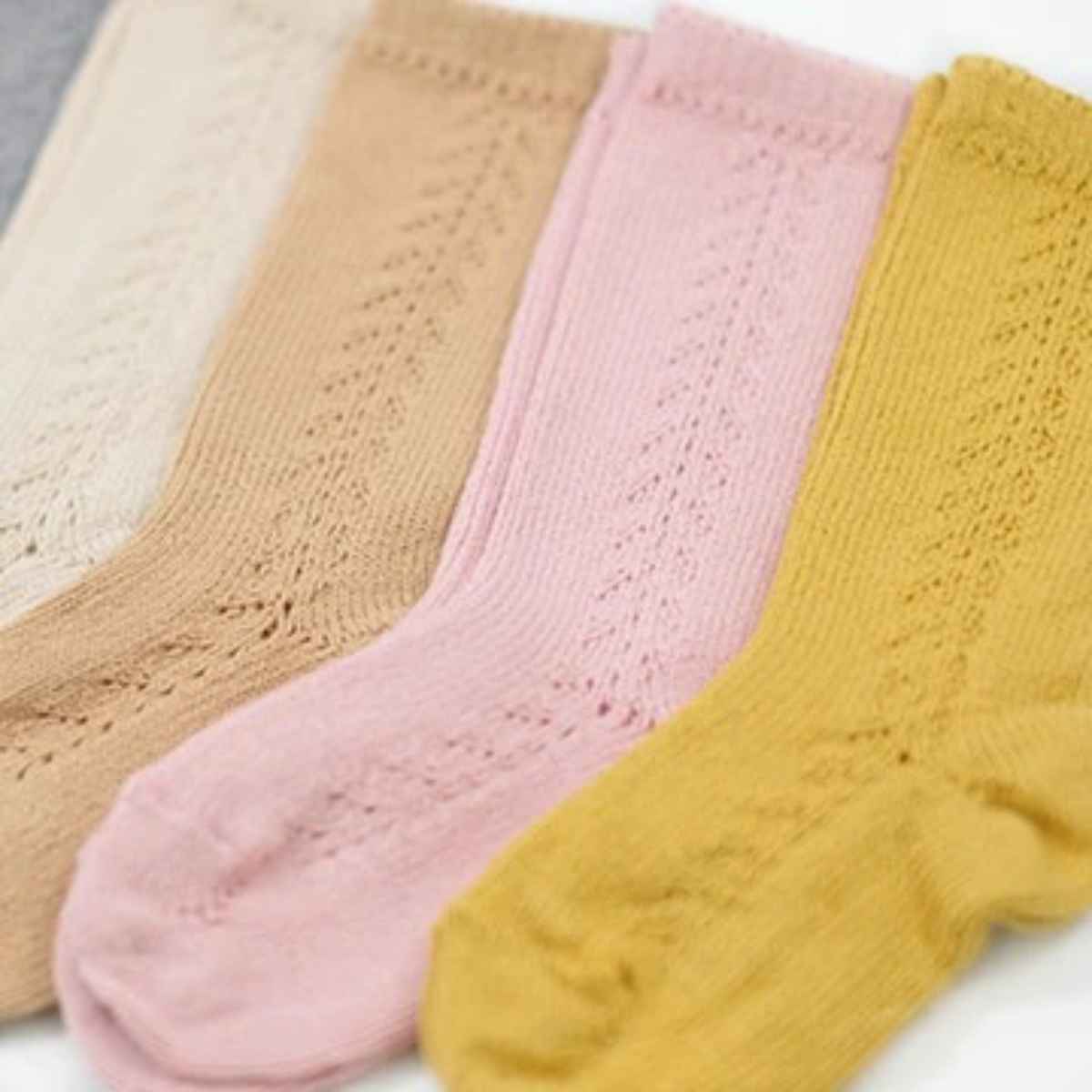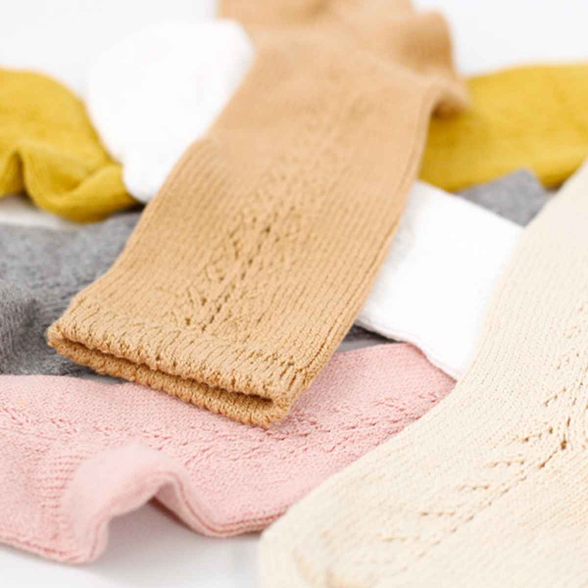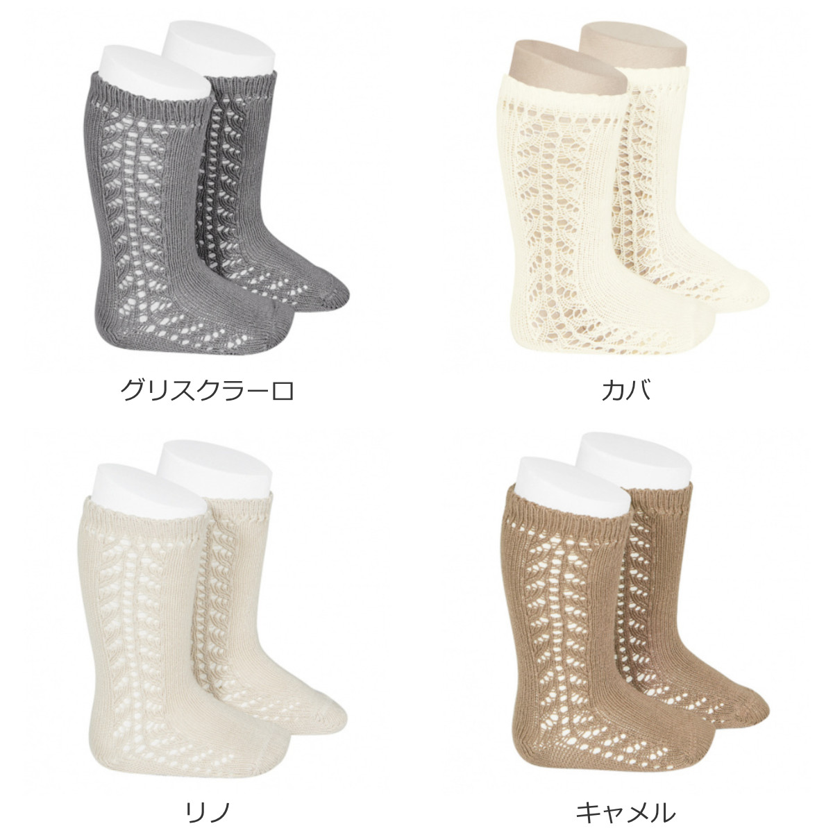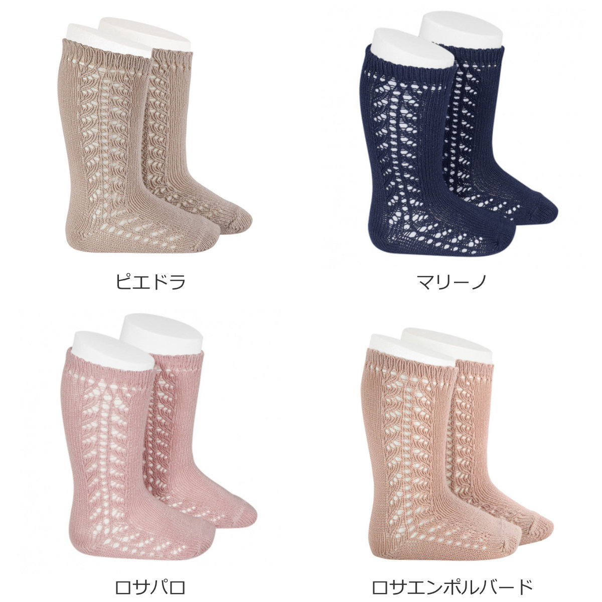両サイドに透しが入った可愛いデザインです。普段着からお出かけ時まで、足元を可愛く演出します。出産祝いやお誕生日などの贈り物にもぴったりです。